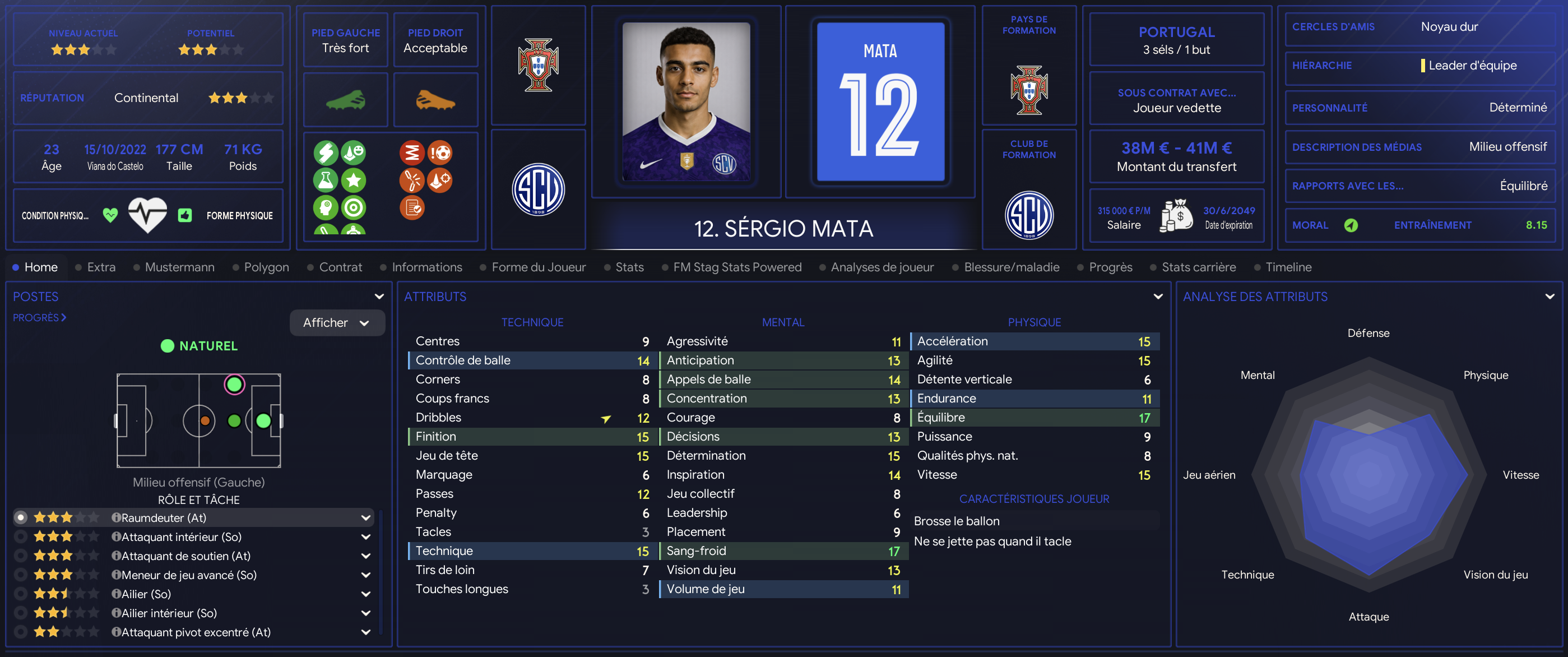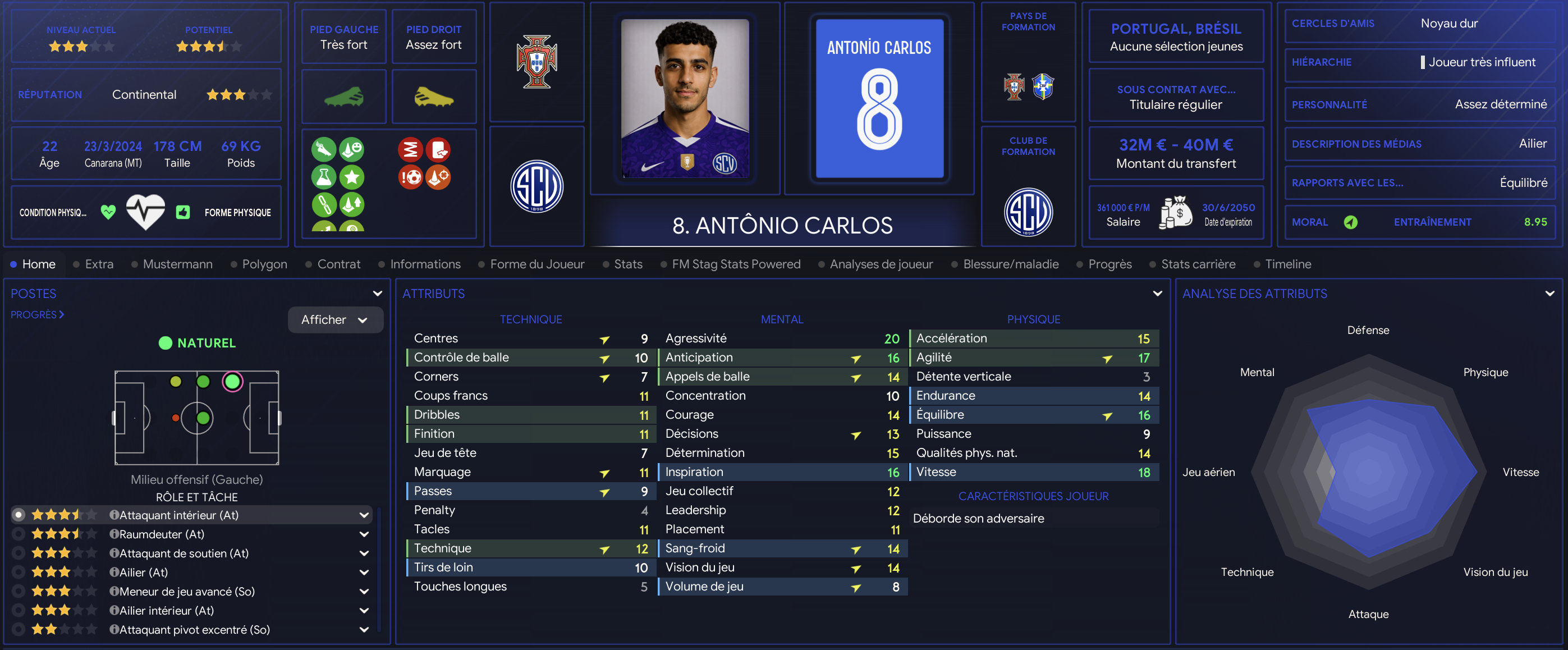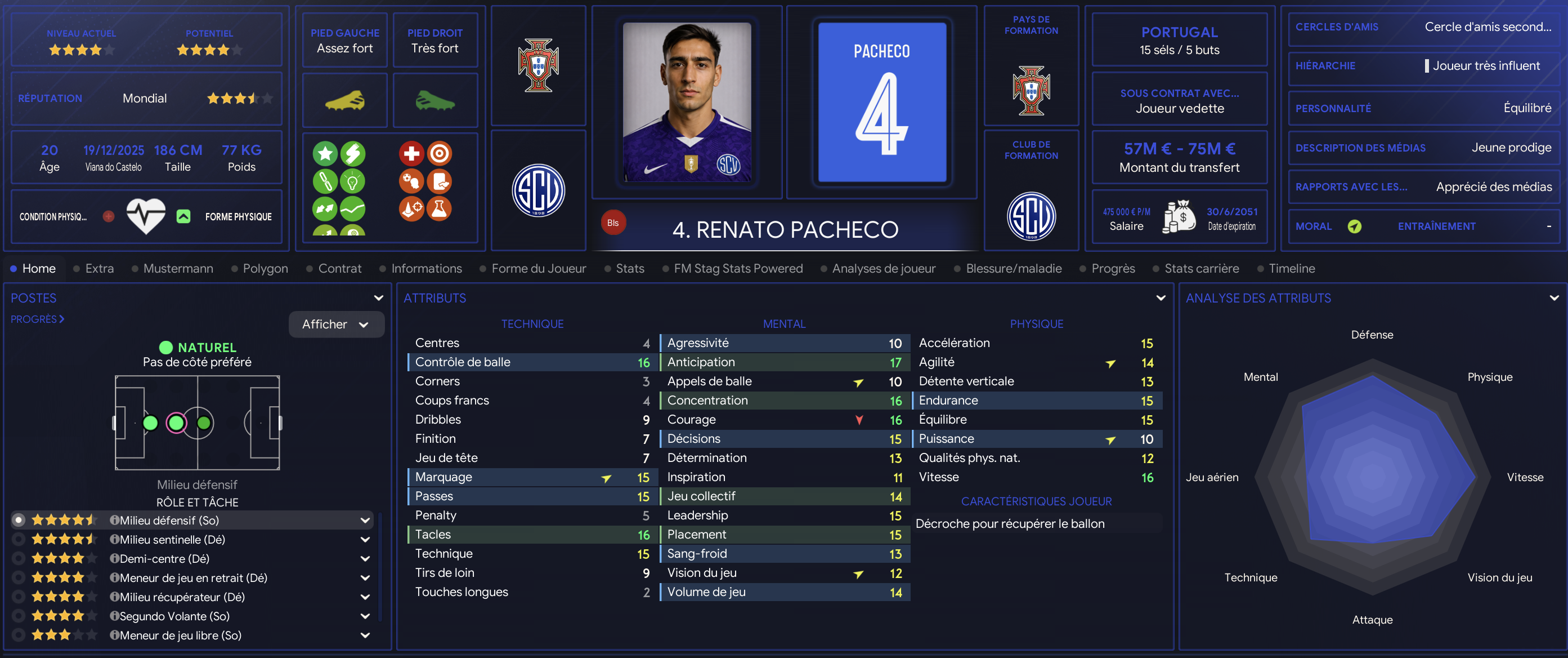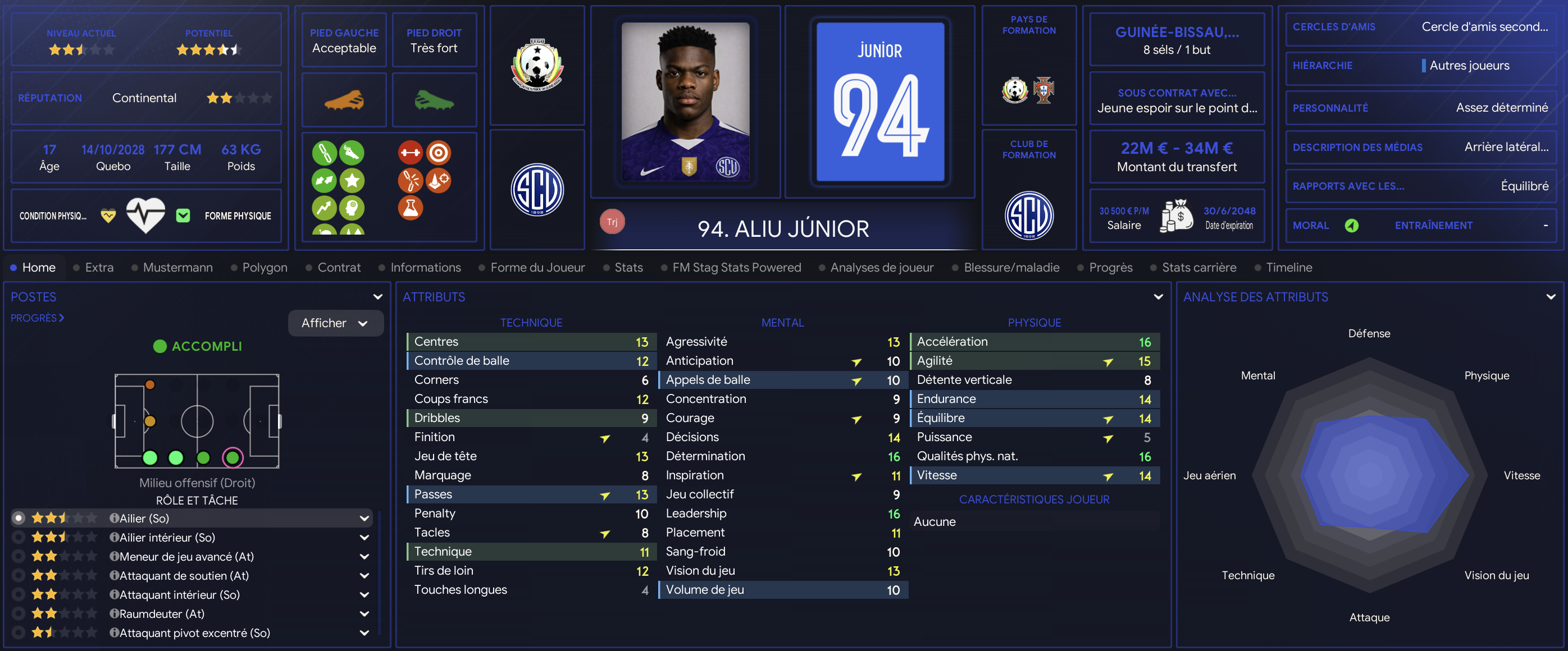 Emmanuel est un jeune footballeur lusitano-ghanéen. L’an passé il a réalisé une saison folle en pro profitant d’une blessure et de la CAN pour s’imposer en pointe. Pour la première fois en six ans, un buteur détrone Mamadú sur la saison. Toutefois Emmanuel est très convoité et viens de remporter Champion’s League ainsi que Coupe du Monde. Anibal sait très bien qu’il ne pourra pas le retenir quand la meute de cadors se penchera sur lui.
