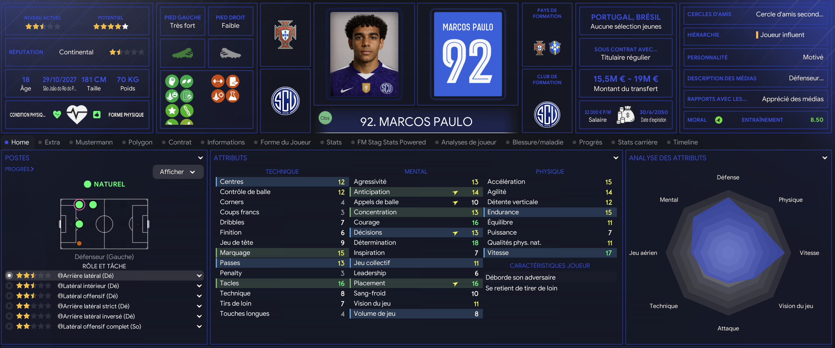 Marcos Paulo est un jeune piston brésilien formé au club. L’an passé il s’est imposé sur l’aile gauche de la défense des cavaleiros. Il devient plus décisif avec le temps aussi. S’il partage encore le poste avec Leandro Sendão, il profite du recentrage de ce dernier pour s’imposer. On parle beaucoup de lui en sélection ou Brésil et Portugal espére le convaincre.