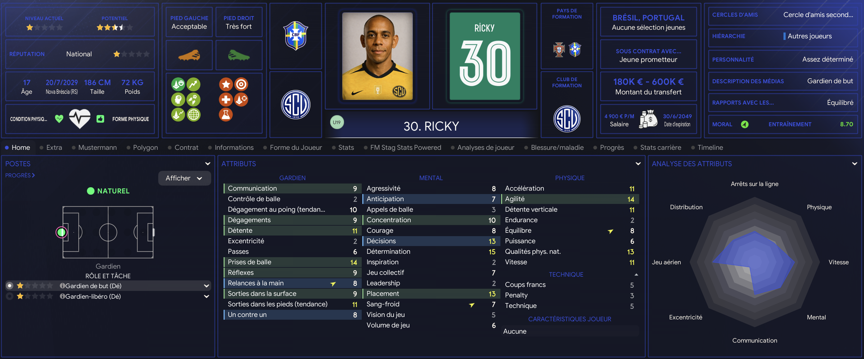 Ricky est un jeune portier binational originaire du Brésil. Il a choisit la nationalité sportive de ses parents et semble très mature pour son âge. Avec nos jeunes en prêt il sera de facto le numéro 2 derrière Bruno Santana. Titulaire indiscutable en U19 il a permis à son équipe de garder les titres de champion national et de Youth League. En outre il a fait ses débuts en pro en Taça. Cette saison, il devrait avoir de nouveau l’occasion de se montrer.