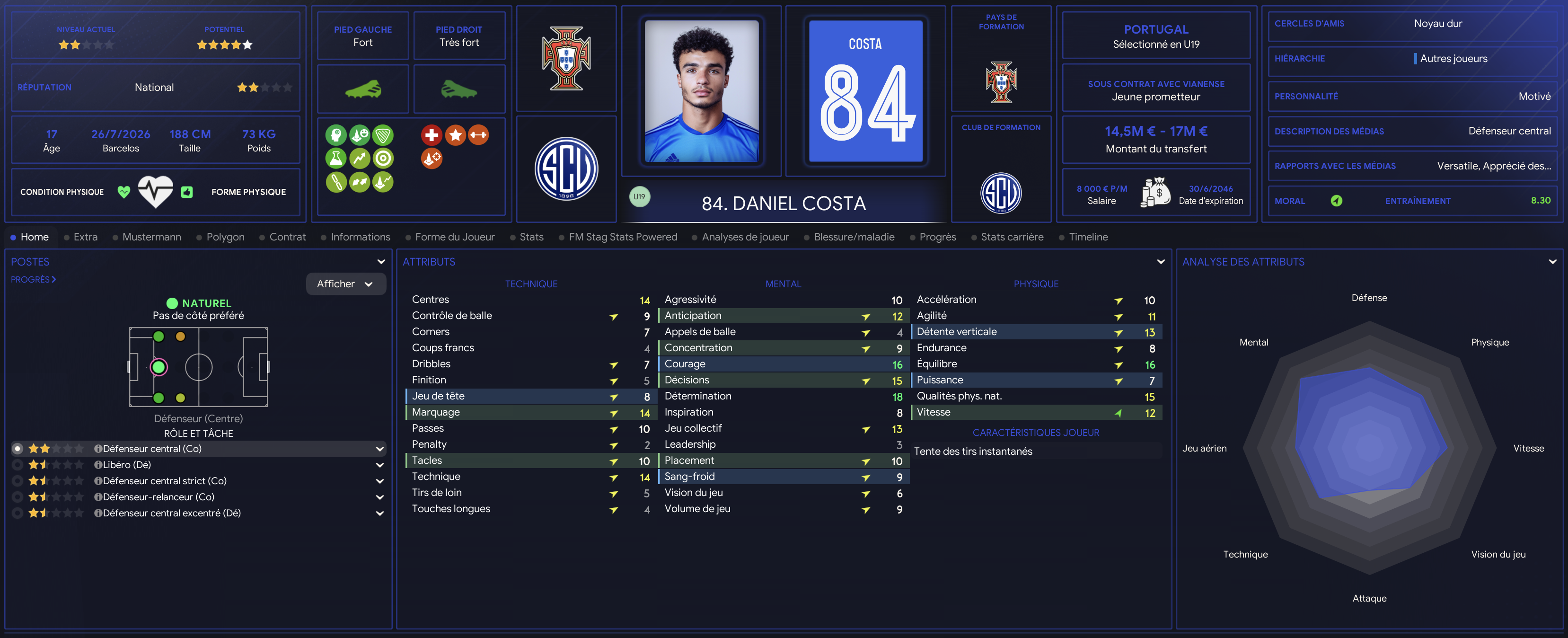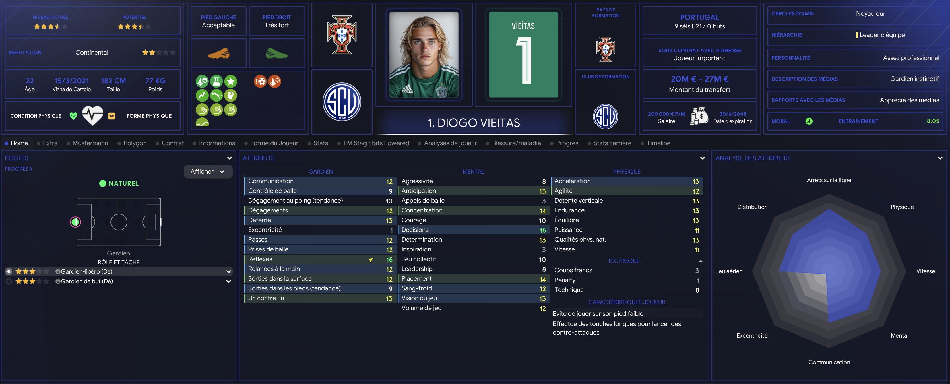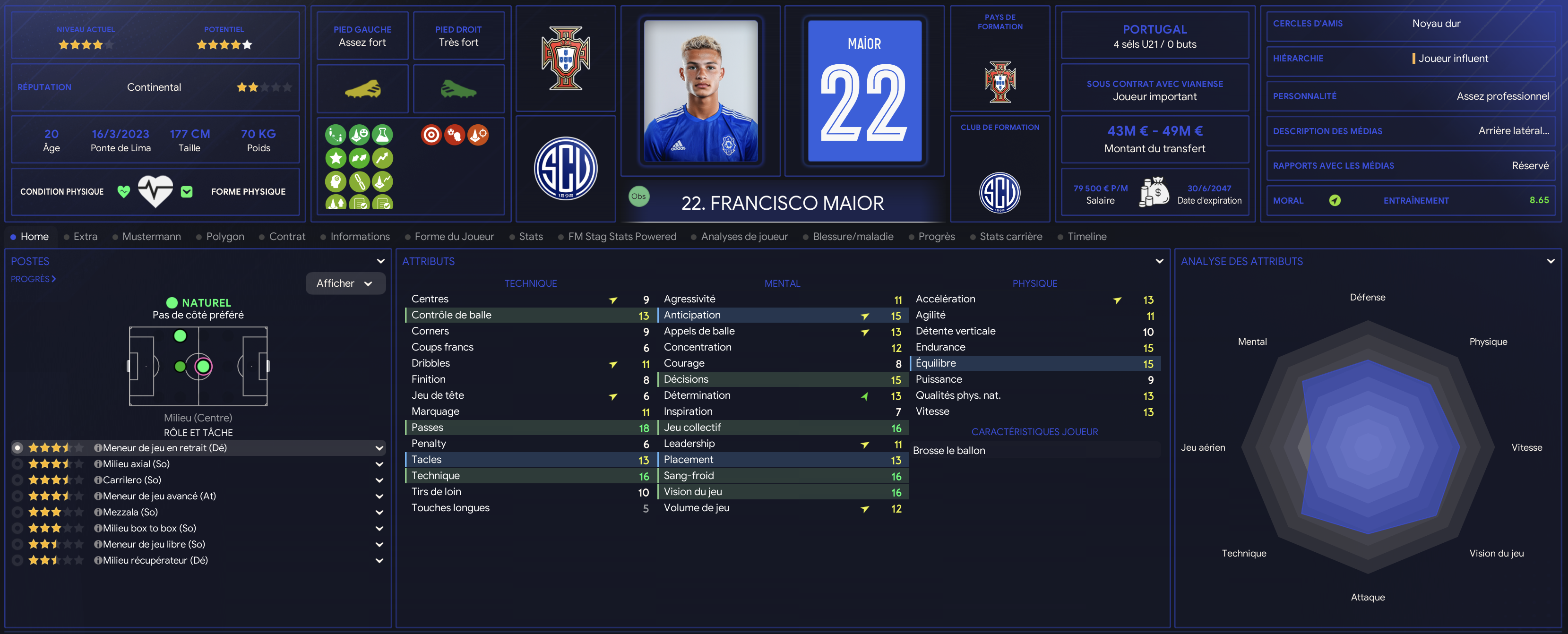 Francisco est une des pĂ©pites du centre de formation. NĂ© Ă Viana do Castelo, il est chouchoutĂ© par le club depuis ses 5 ans. Capitaine des U19 en son temps, il viens de vivre sa troisiĂšme saison pro et sâest installĂ© comme un Ă©lĂ©ment majeur de lâeffectif mĂȘme sâil est encore partager entre plusieurs postes. International espoir portugais.