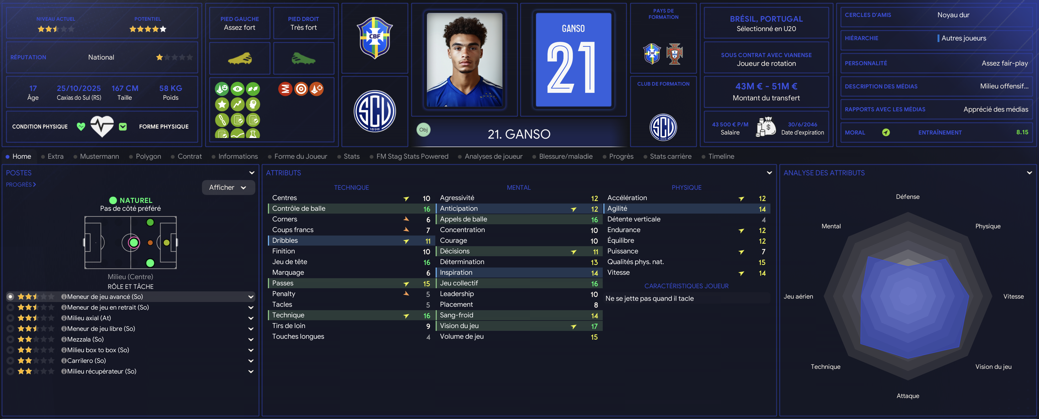 Ganso est un jeune brĂ©silien arrivĂ© au club Ă lâautomne dernier. Il arrive de Palmeiras et a Ă©tĂ© acceuilli personnellement par Anibal et Yessica. Ganso nâest autre que le fils prodige de Saldanha. Promis Ă un trĂšs grand avenir tout porte Ă croire quâil sera international un jour. Il sort dâune saison pleine en U19 trĂšs intĂ©ressante ponctuĂ© de pas mal dâapparitions en pro notamment en coupe. Il est promis Ă un grand avenir.