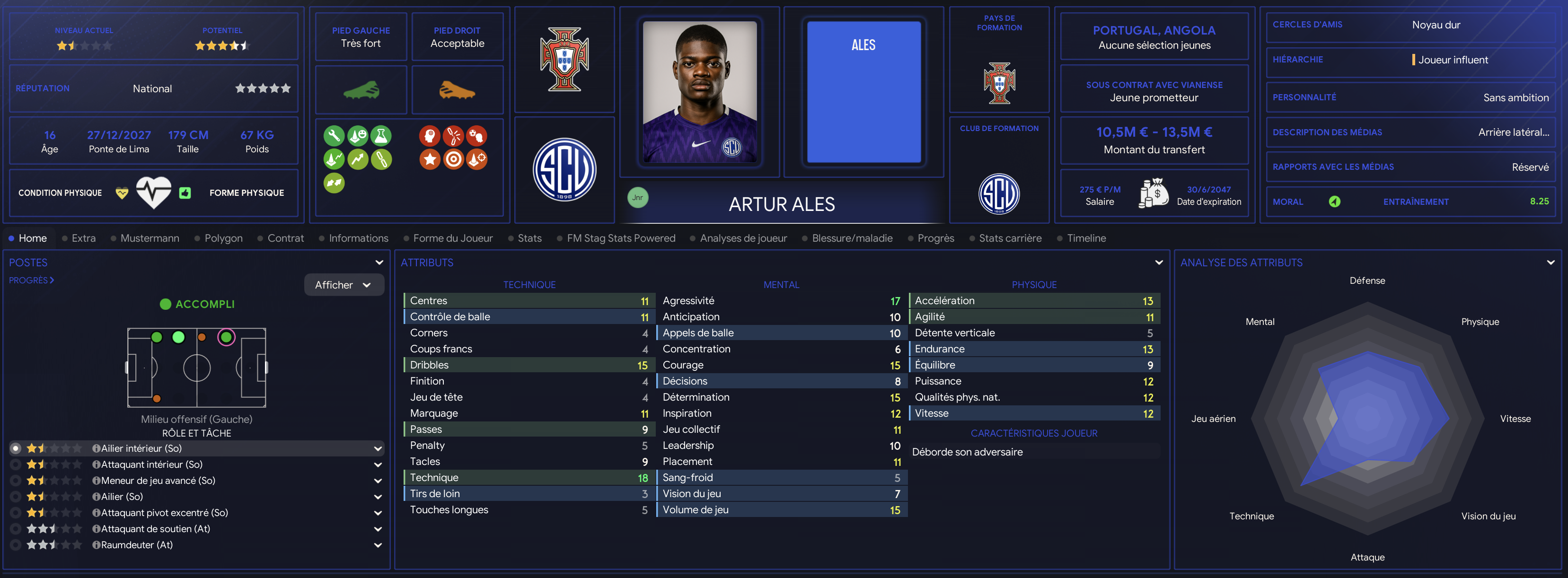 Artur Ales est un jeune latéral offensif gauche présent au club depuis son plus jeune ùge. Il fait partie de la diaspora angolaise. Au club il est parrainé par Carlos SimÔes. Il est promis à un grand avenir et devrait rapidement entré dans la rotation du club.