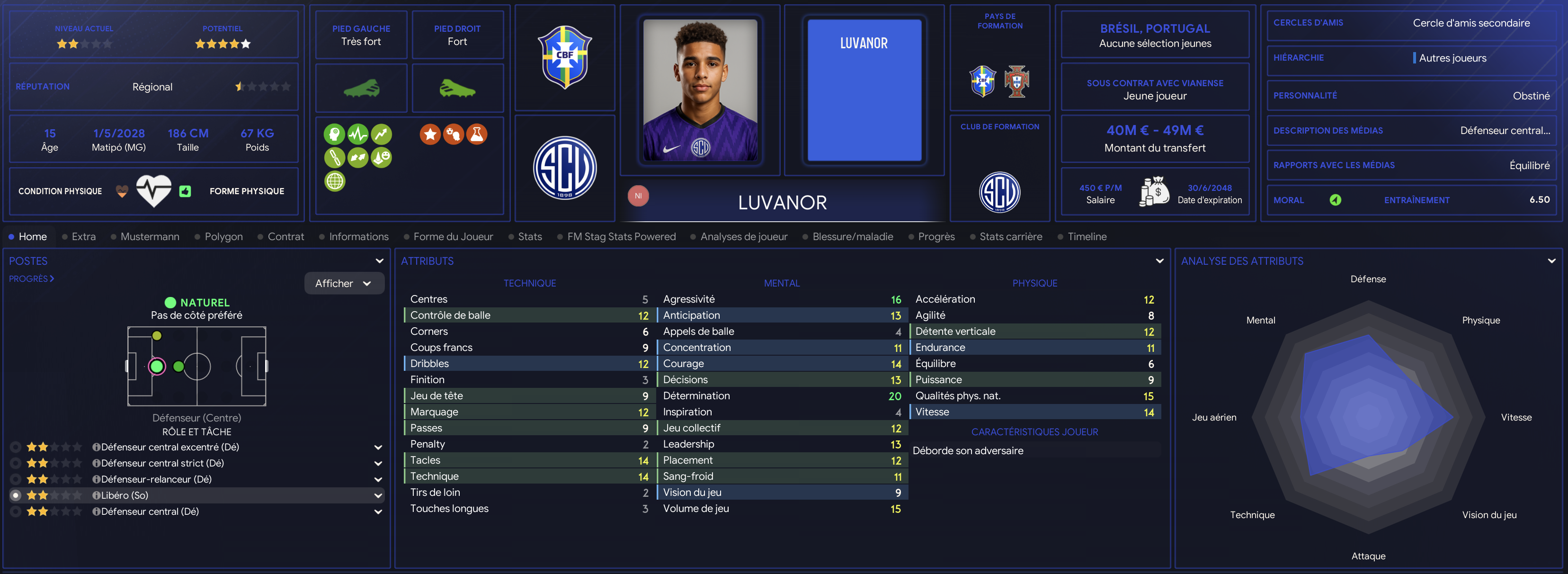 Luvanor est un jeune central brĂ©silien capable de jouer milieu dĂ©fensif. Le staff lâa repĂ©rĂ© jeune dans lâacadĂ©mie du club et il semble destiner Ă prendre la succession dâAltair et Gabriel. DĂŽtĂ© de bonnes capacitĂ©s techniques il a tout pour devenir le nouveau libĂ©ro de Vianense voir du BrĂ©sil.