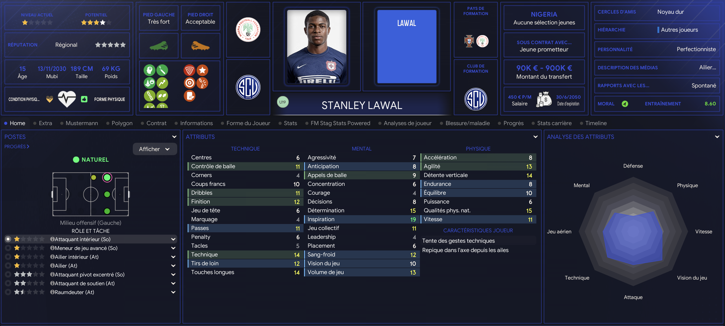 | RÎle Préf | Ailier |