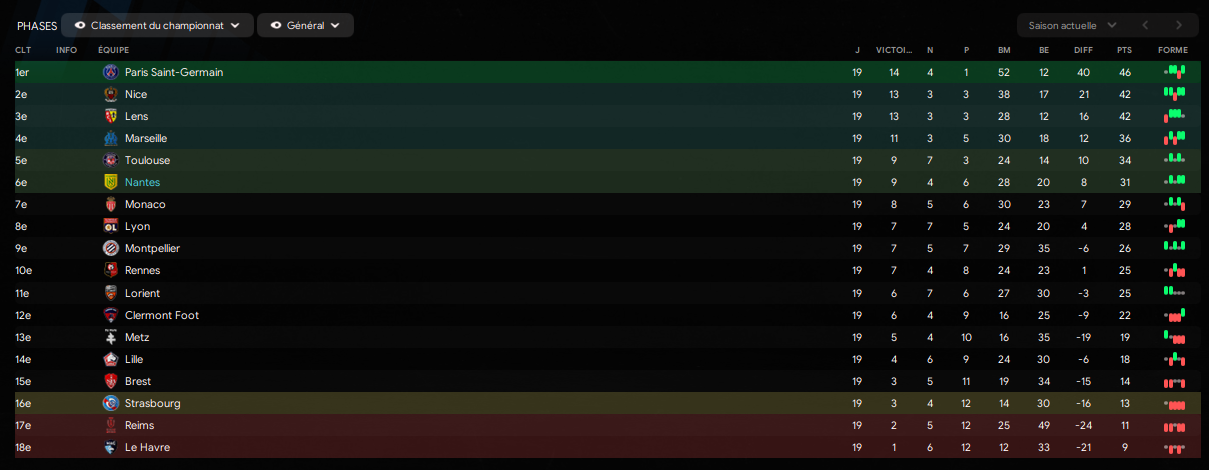 NĂ©anmoins, le classement reste bon. Lyon et Montpellier ne sont pas loin mais Ă lâinverse, Monaco et Rennes nâont plus.