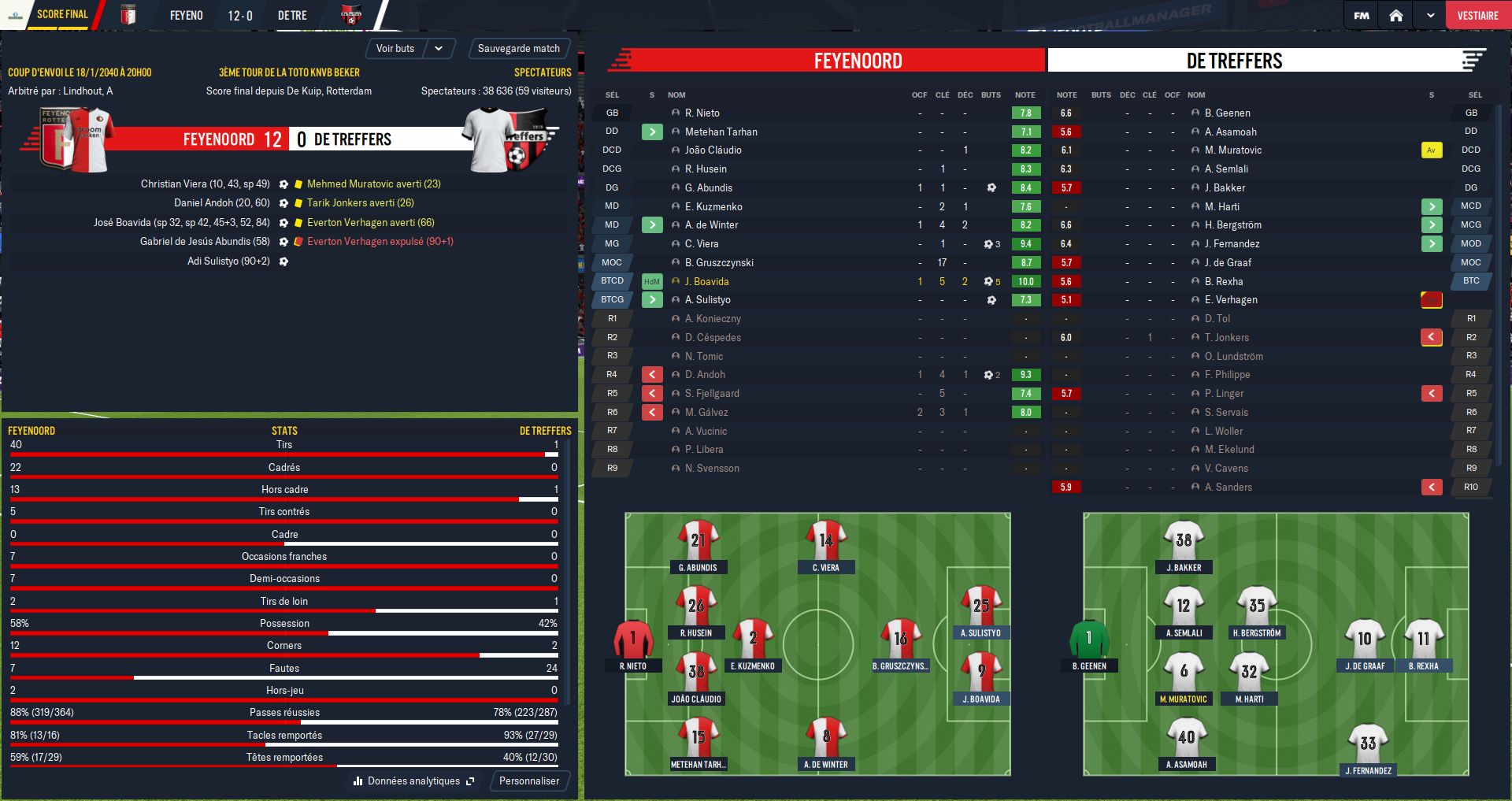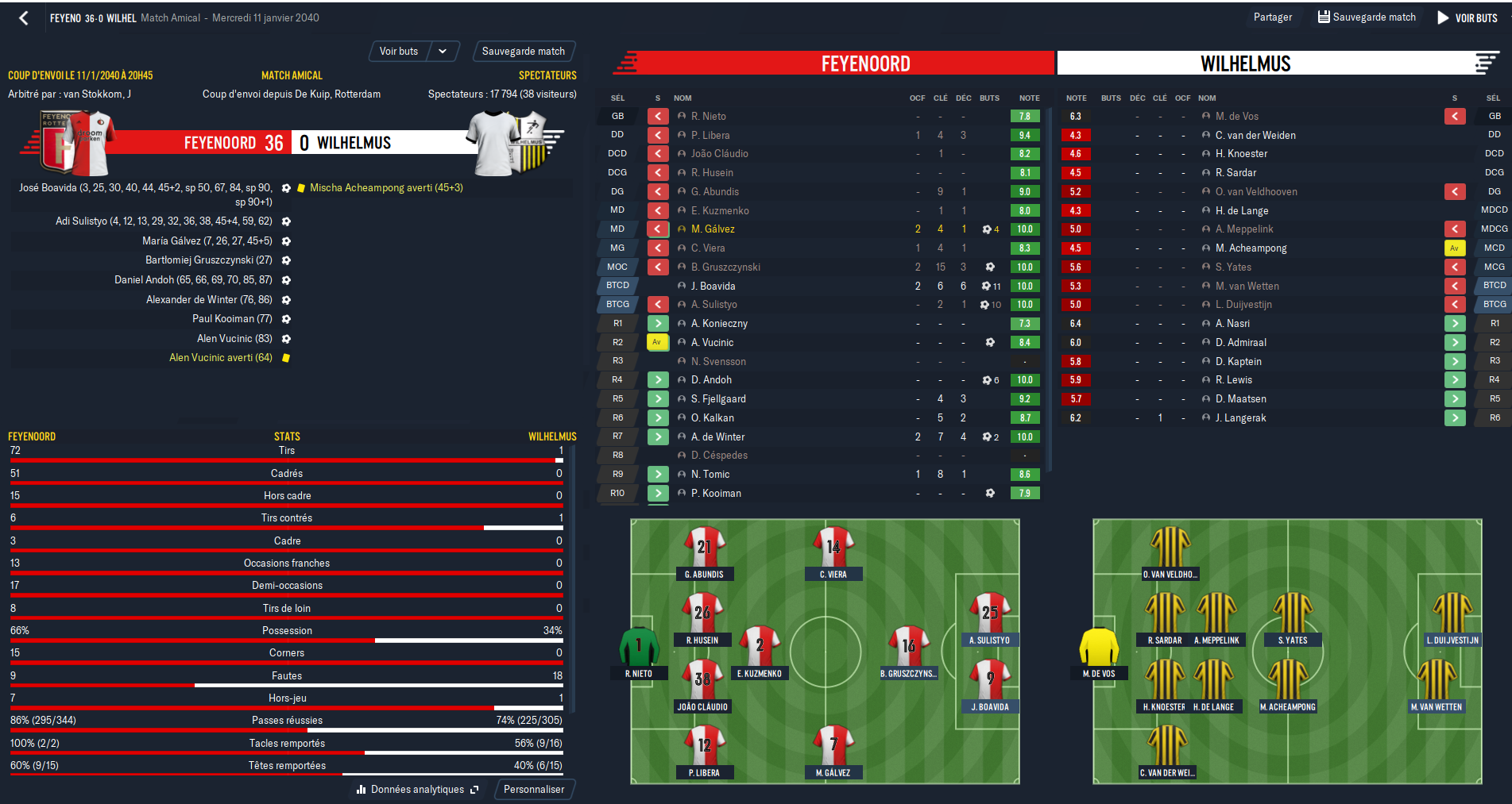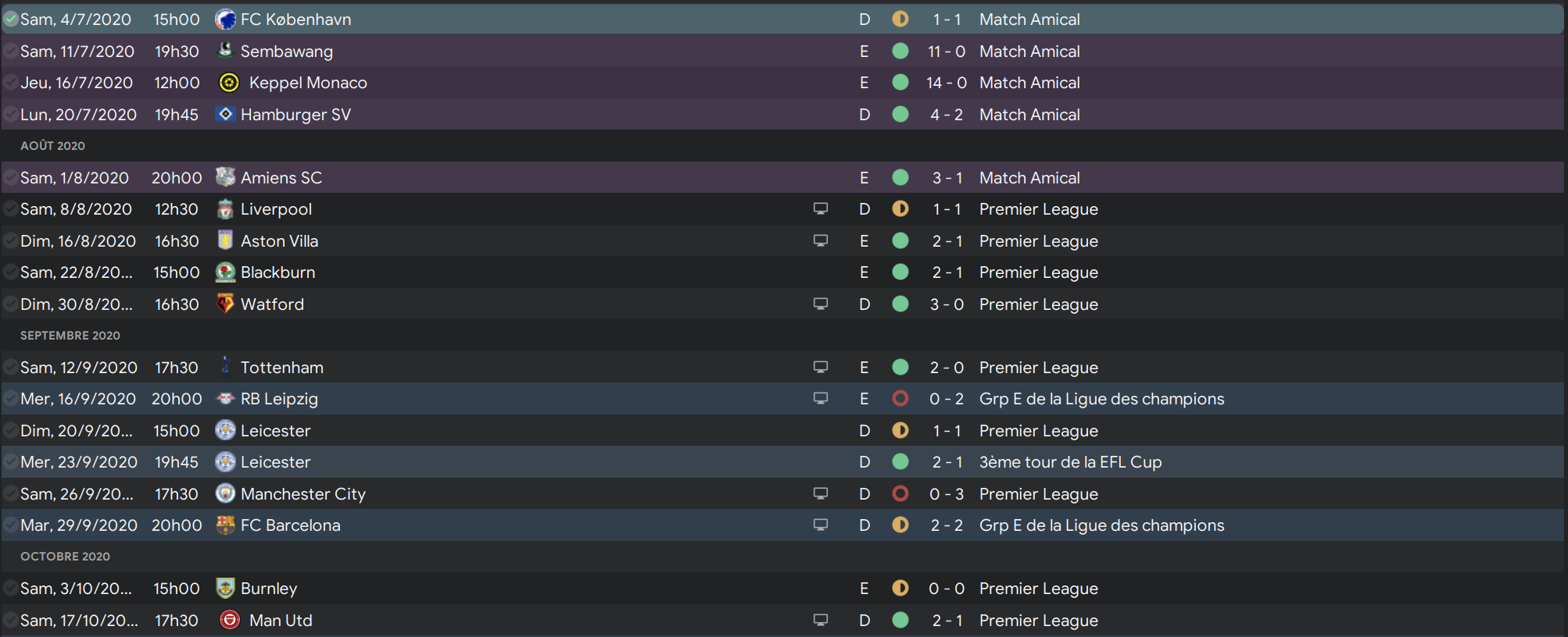 Honte à moi car j’ai allègrement copié une tactique toute faite mais j’avoue que l’aspect tactique n’est pas ce qui m’intéresse le plus dans FM. Cependant les résultats obtenus avec sont plutôt bons et cette tactique produit un football spectaculaire comme le souhaitent les dirigeants.