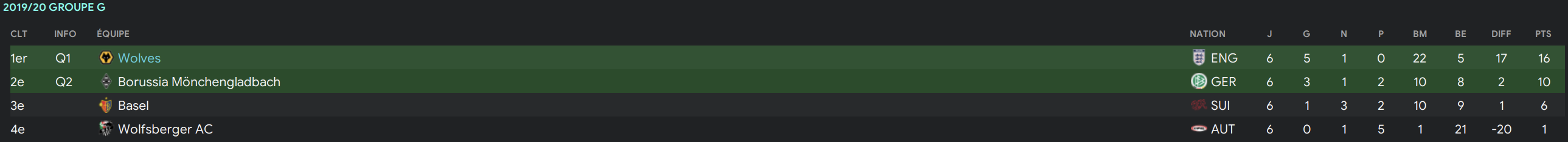 Vu qu’à la base je ne pensais pas écrire la future glorieuse histoire des Wolves sur le forum, je n’avais pris aucun screen mais de mémoire un effectif très prometteur mais qui manquait de profondeur avec des joueurs qui se blessaient régulièrement (en particulier un certain Adama Traoré…).
