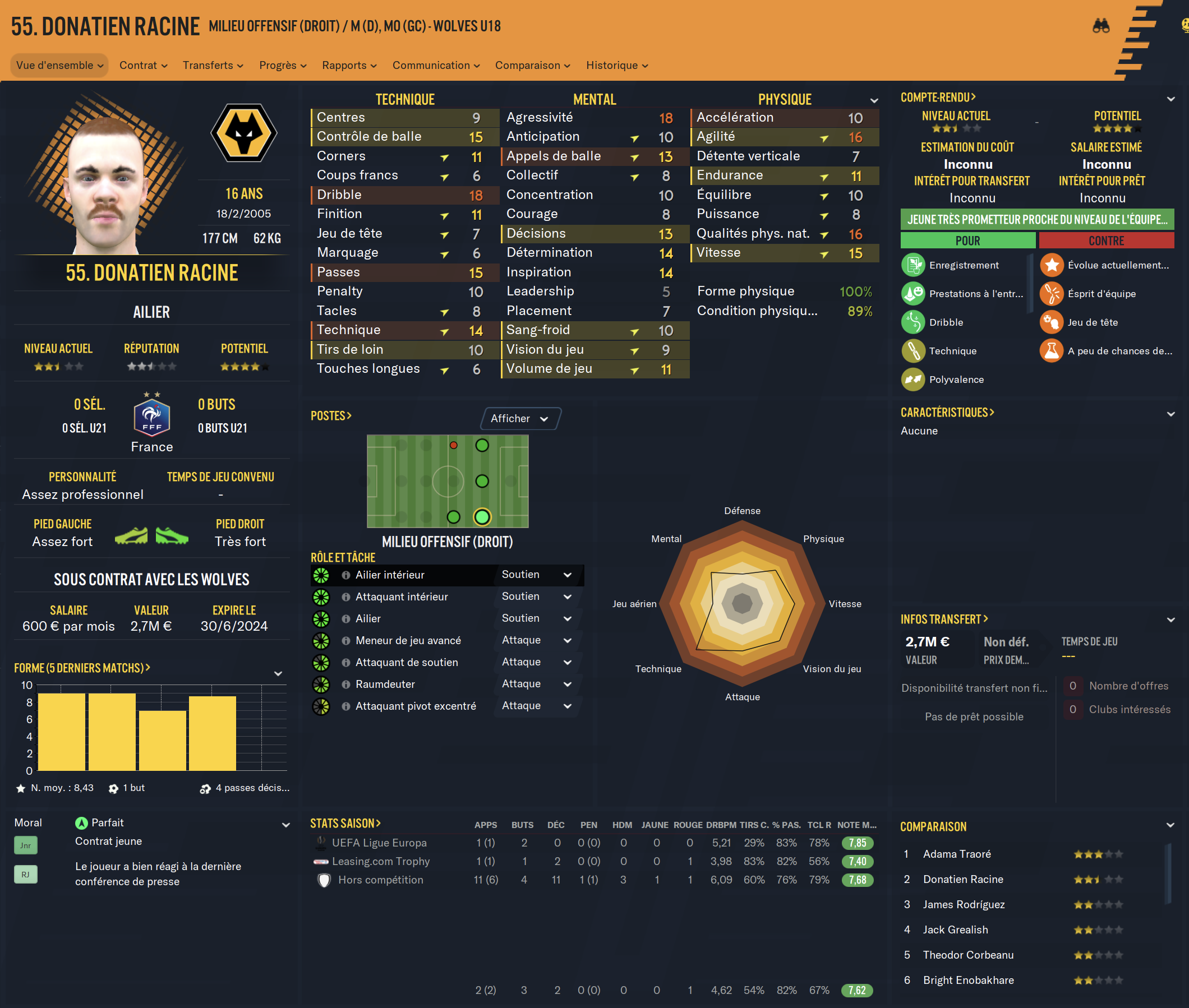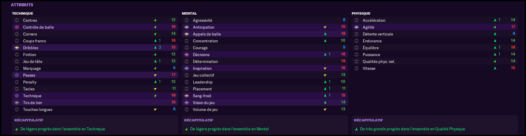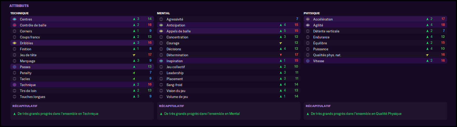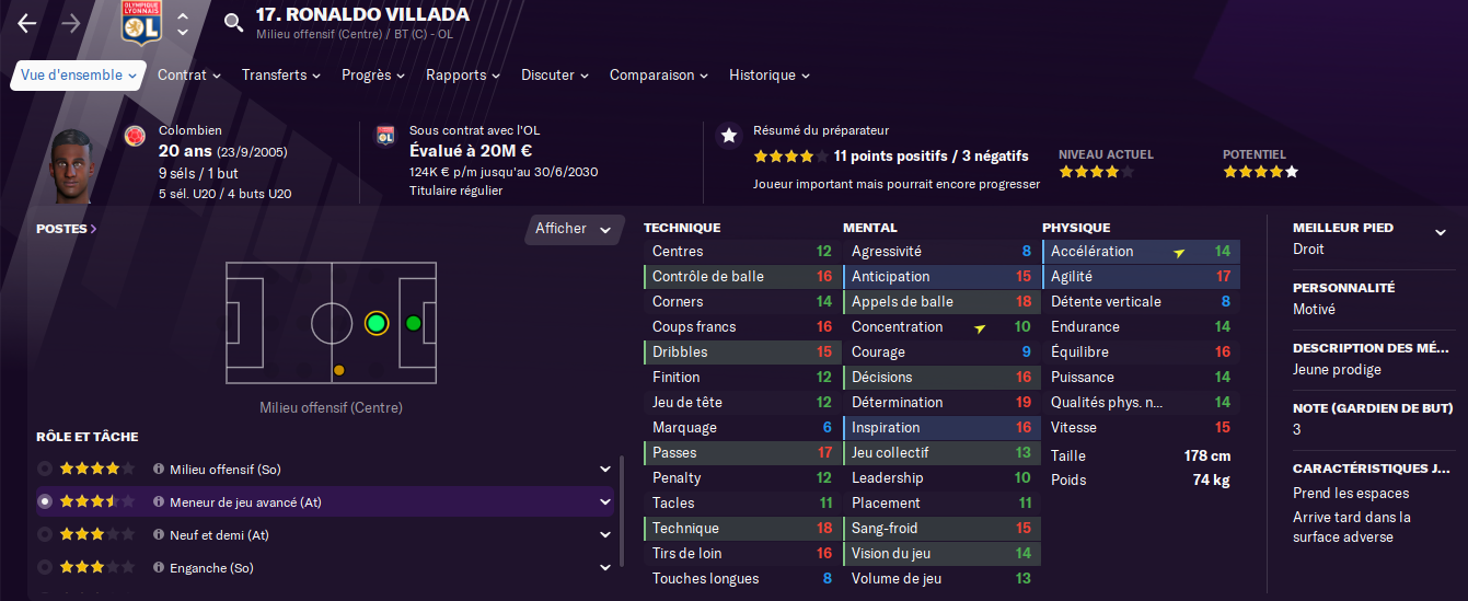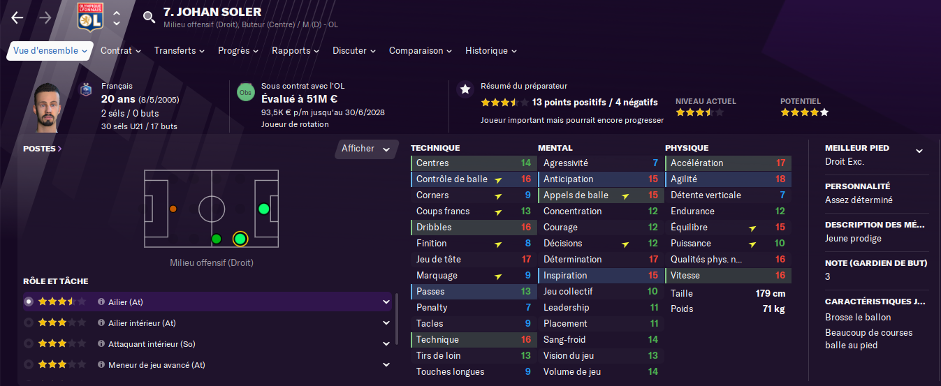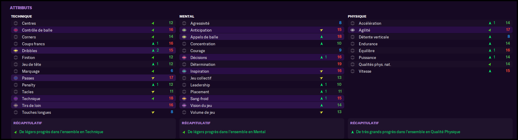 Quelques regens de ma partie en cours avec Lyon. En recherchant manuellement, on en trouve à la pelle, je vais en montrer que quelqu’uns à chaque fois. Je mettrais à chaque fois leur progression en stats depuis qu’ils sont chez moi.