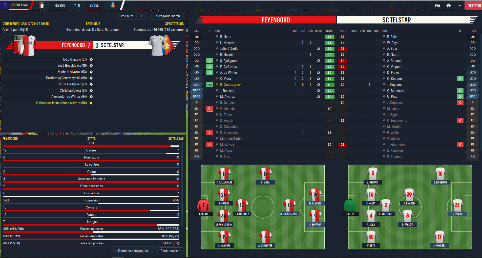 Bref, j’ai mis 7-0 au club que j’ai mené au sommet (6 fois champions des pays-bas + 1 C1 + 5 coupes des Pays-Bas). Ils étaient 2ème ex-aequo avec l’ajax au moment du match.