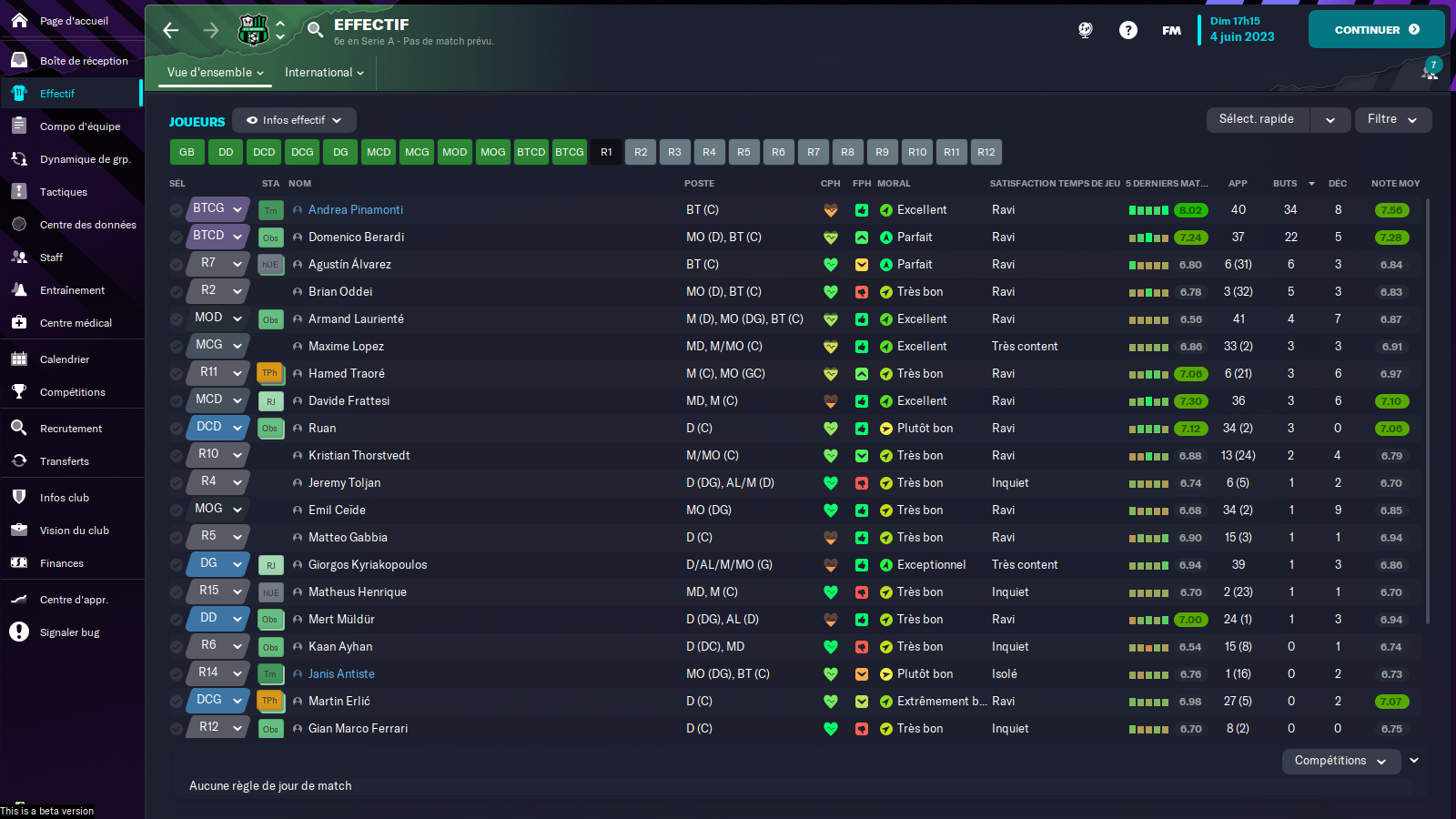 On me demandait la première partie de tableau et après une saison magnifique et une dernière victoire a domicile contre l’atalanta on finit 6e et on obtient une place en Ligue Europa. On finit meilleure attaque du championnat . On aura n battu 1 fois l Inter ( 2 1 chez eux) 1 fois la Juventus ( 4 2 chez nous)1 fois la Roma ( 5 0 chez eux) 1 fois Naples ( 4 0 chez nous ) et 1 fois donc l Atalanta ( 2 0 chez nous).