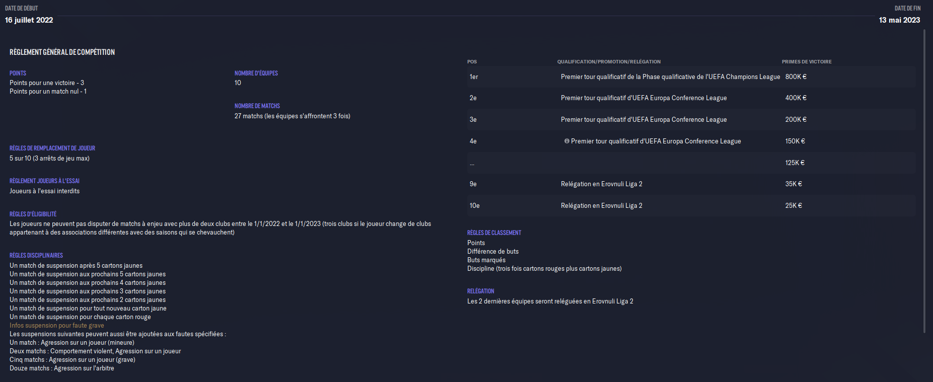 Je te mets toutes les règles du championnat (en tout cas avec l’update que j’ai trouvé sur le workshop) :