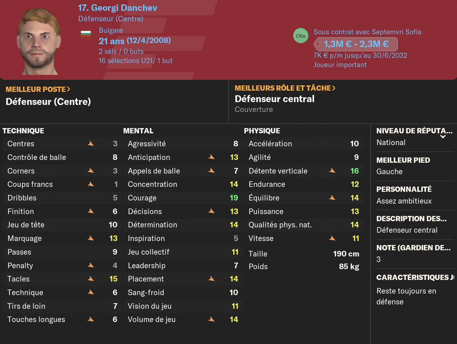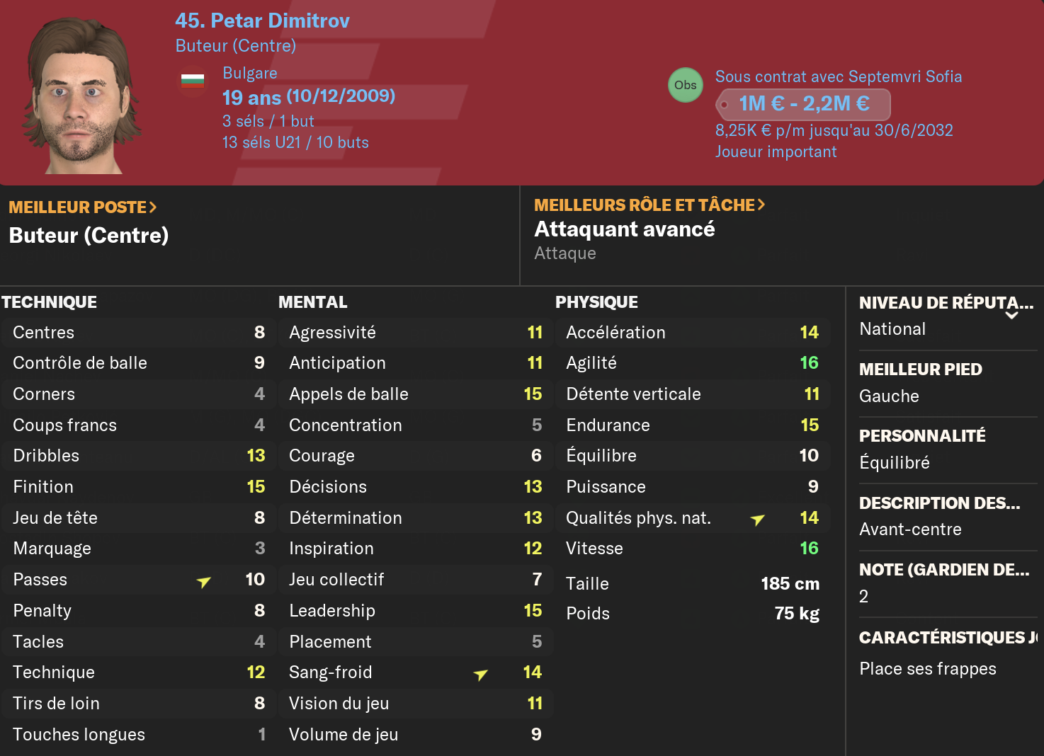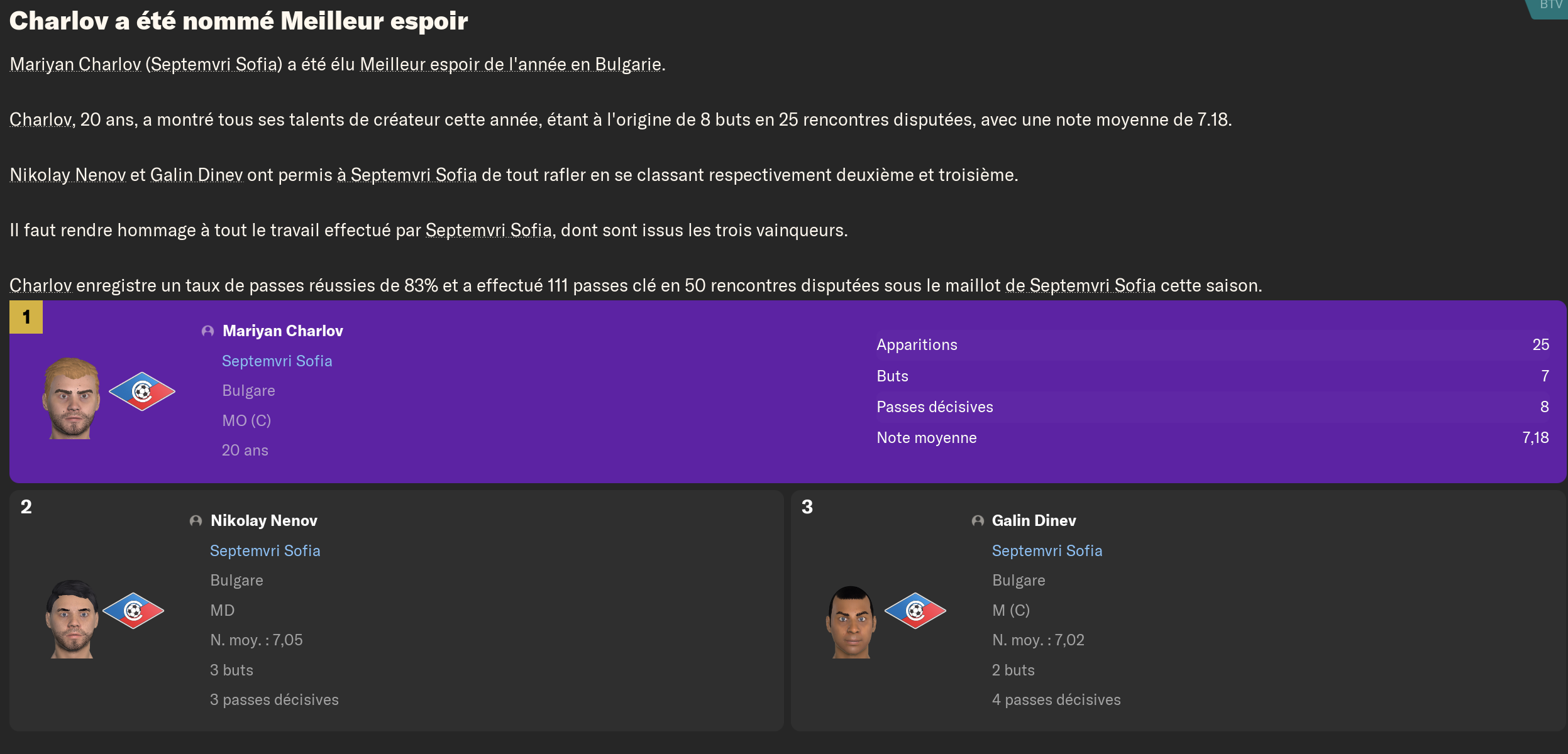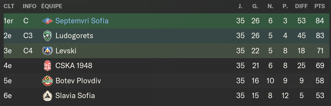 J’ai aussi ma réputation qui a du pas mal monter : 2 fois champions d’affilée, 2 supercoupe de Bulgarie, une coupe de Bulgarie. Deuxième année de suite qualifié en LdC (bon je vise les groupes d’Europa League en sortie de barrage).