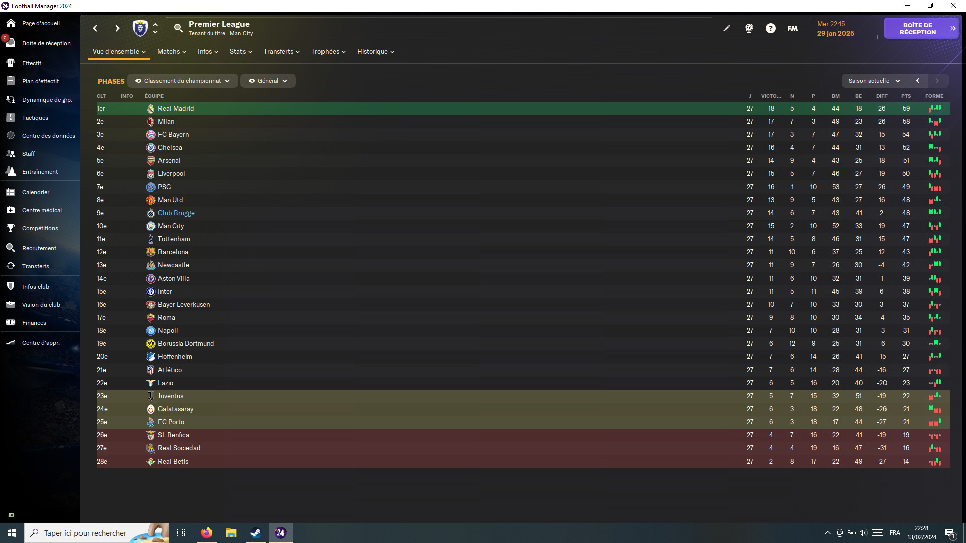 Oui c’est sur. Mais justement, comme je sais que mon équipe a le niveau pour accrocher la 17 ème place, je booster le plus possible la connaissance de la tactique et tout ce qui touche au moral ou à la cohésion.