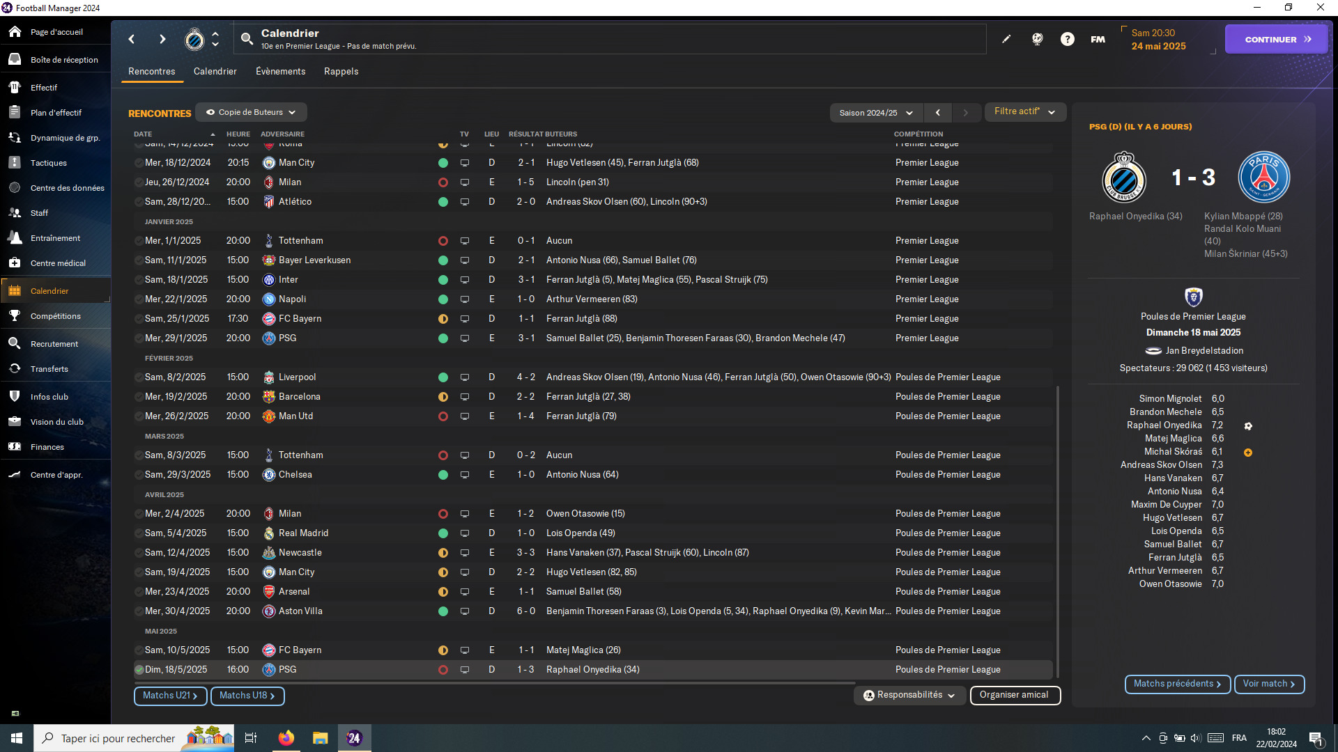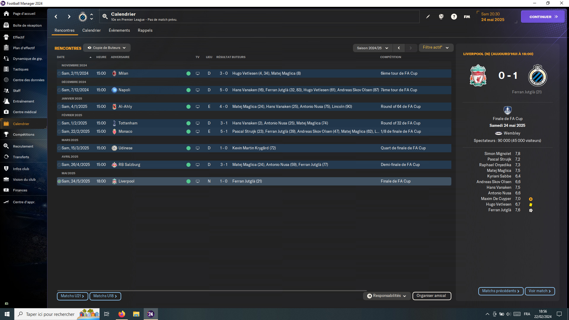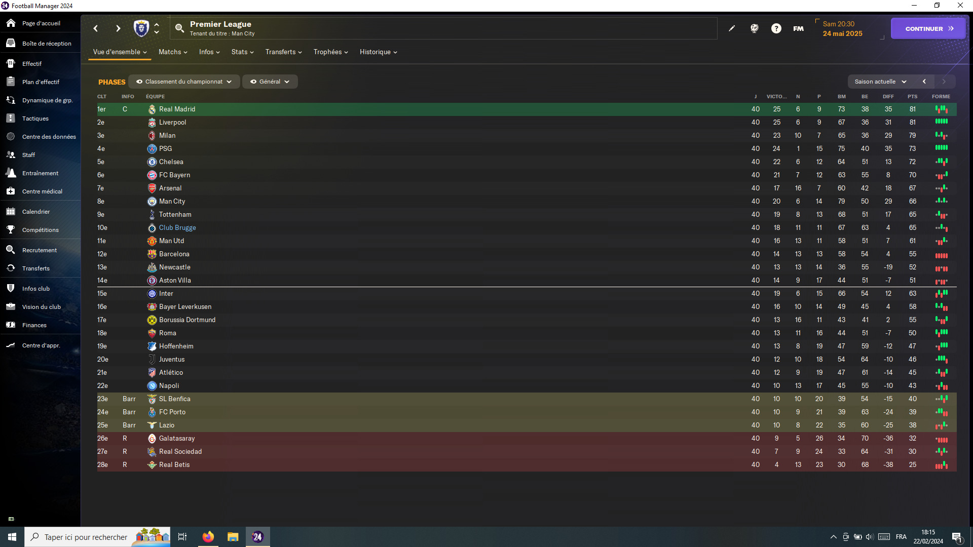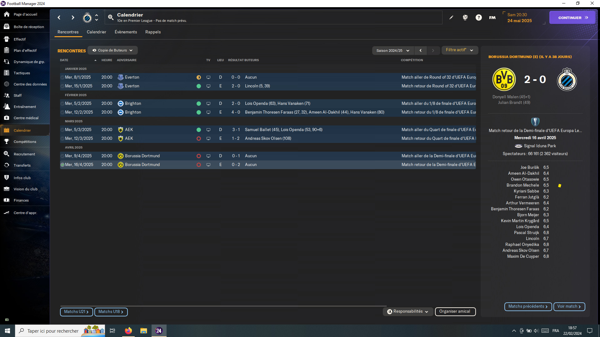 Moi je suis dans la phase d’avant, celle où je n’arrive pas à démarrer vraiment une partie. Au point de me faire regretter Parme et ses 9 saisons sur FM22. Mais de là à me relancer là bas une fois encore, il y a un pas que je n’ai pas trop envie de franchir. Donc, je tâtonne. Championship… (QPR, M’Boro…), 1/2.B’Liga (Nuremberg), l’Espagne (Valence, Osasuna), la France, les Pays-Bas, la MLS ou je ne sais quoi… ça peut durer des semaines comme ça