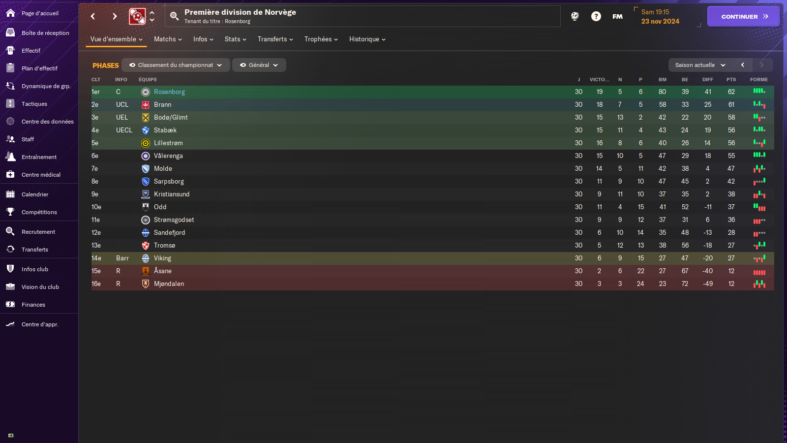 Un dernière partie de championnat sans faute et on conserve notre titre sur le fil , a la 17e journée j’étais 5e et j’en menais pas large mais on s’est bien rattrapé