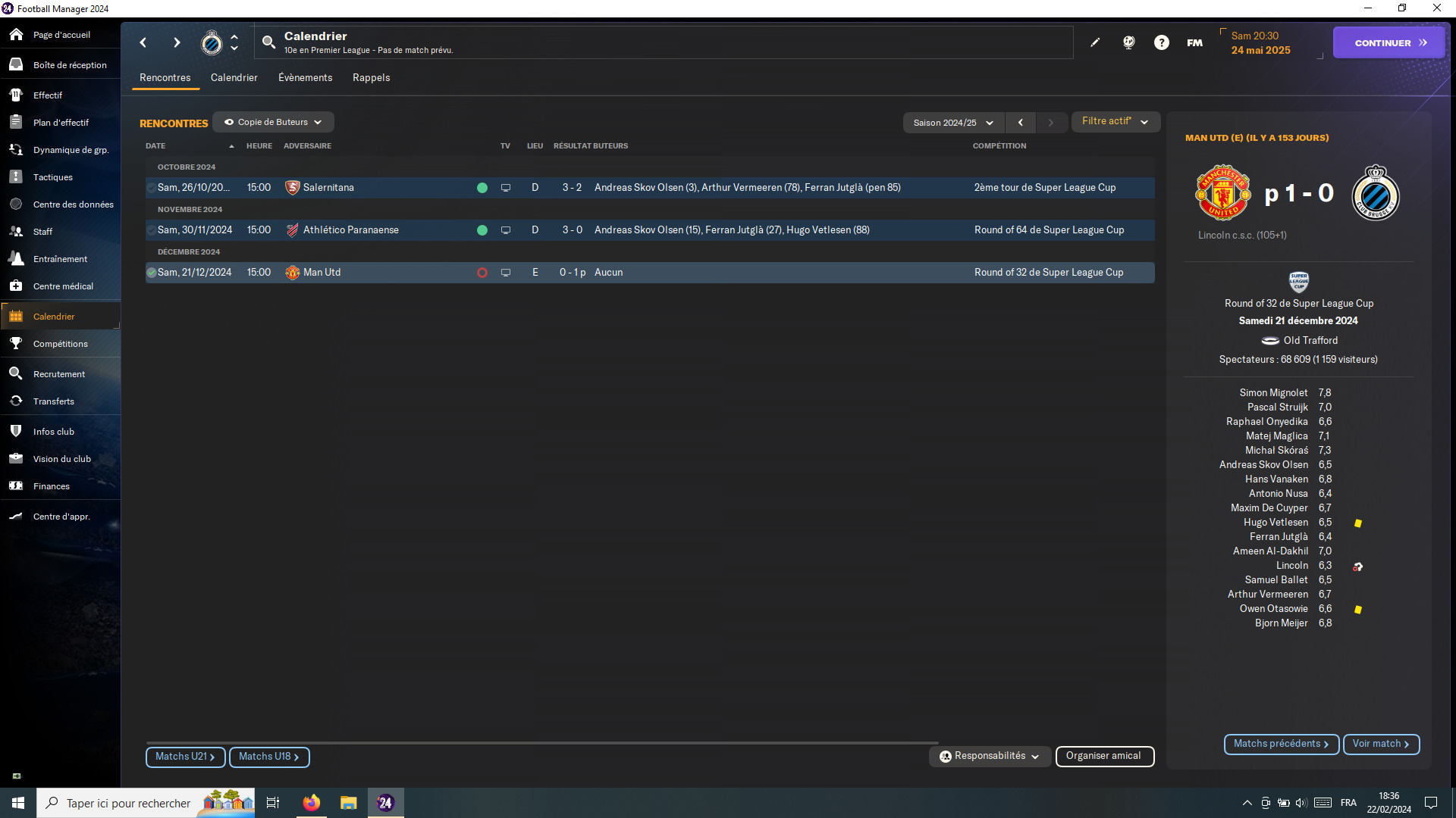 Après deux titres d’affilée, une Coupe, un parcours sympa en Europa League, j’ai encore une réputation toute pourrie, et personne ne veut venir. J’ai maintenant du fric mais je peux pas recruter, même des jeunes prometteurs.