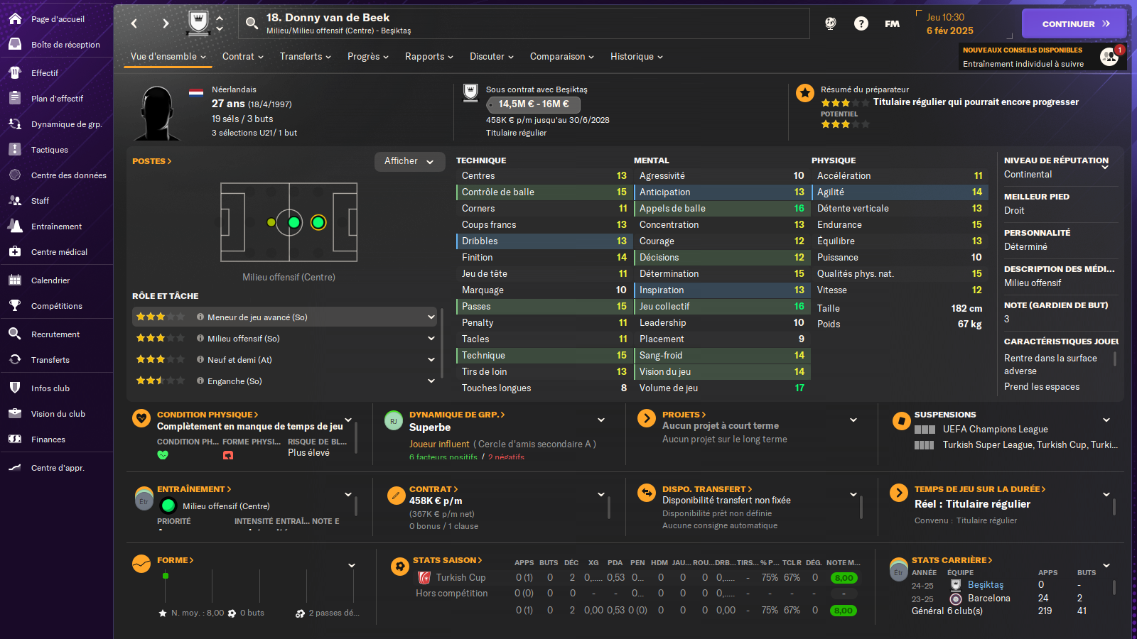 Je trouve qu on fait un excellent mercato avec un nouveau gardien un nouveau meneur de jeu un nouvel attaquant et l’expérimenté van de beek libre en cours de saison . L’attaquant hollandais a été malheureusement pour moi blessé toute la saison les croisés plus une fracture de la cheville !