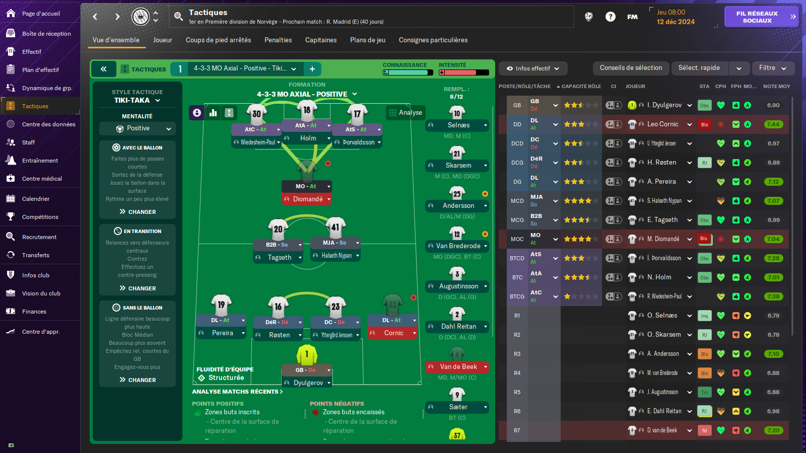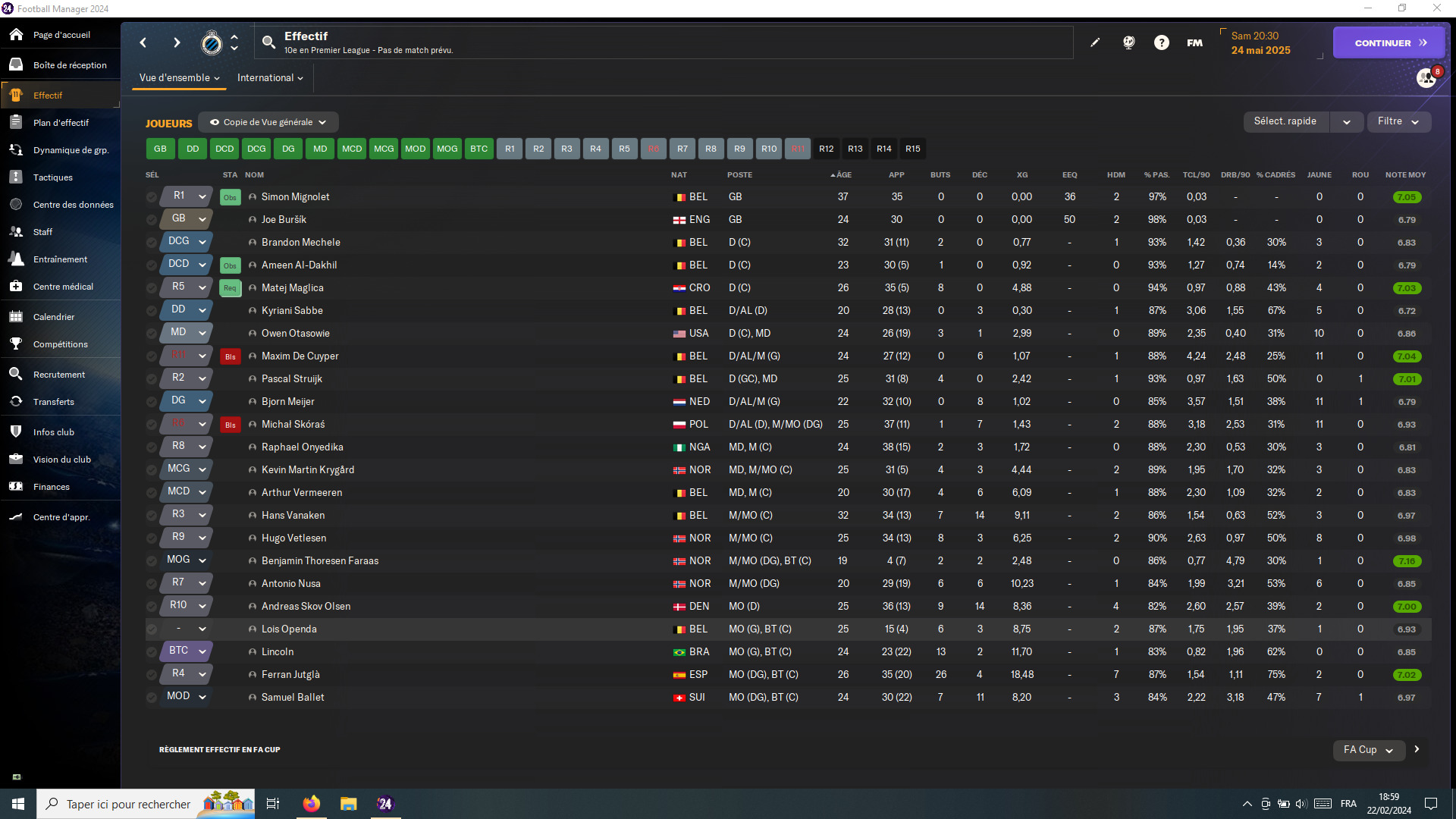Pourtant, y a pas des noms incroyables, mais voila, c’est juste comme je le voulais, y a pas un joueur que j’ai par défaut, mon envie et mes contraintes sont bien respectées, tout colle à ma tactique, j’ai épuré l’équipe des joueurs dont je ne voulais plus en grande partie, et la, ben c’est juste un plaisir de regarder l’effectif. Et pour mon plus grand plaisir, certains noms qui m’avaient toujours échappés sont enfin chez moi dans une save FM. A moi les Lewis Cook, les Troy Parrott, les Dele Alli et surtout, les James Ward-Prowse.