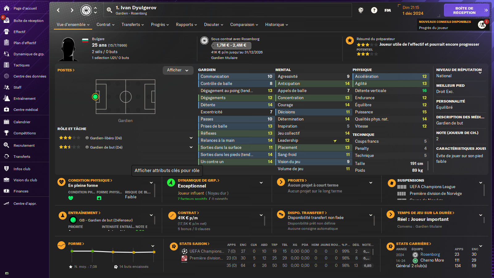 Tout les indicateurs sont dans le vert. La Cohésion est bonne, l’atmosphère ça va aussi, j’ai le soutien des joueurs.