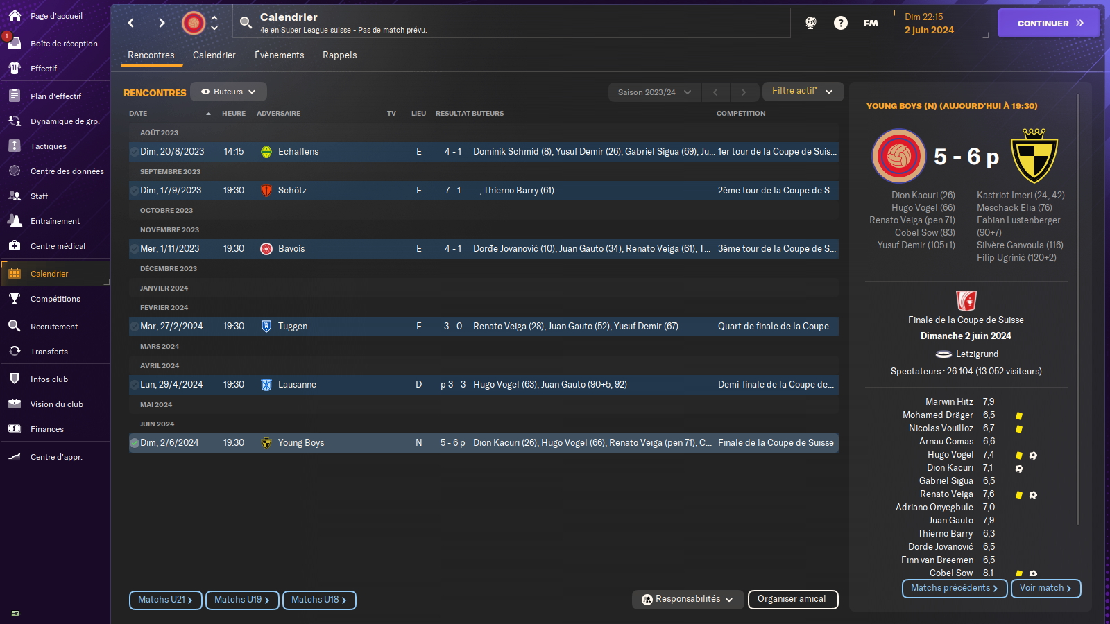 Finaliste coupe de Suisse 2024