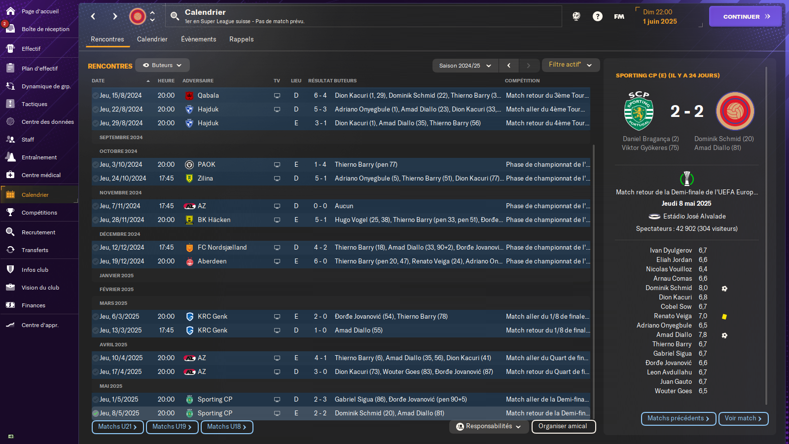 une très belle épopée en ligue europa conference qui nous emmène jusqu’en demi finale ou on s’incline d’un rien face au sporting Lisbonne