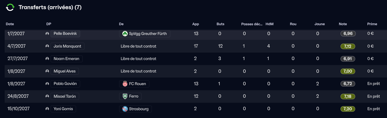 J’ai surtout recruté 2 joueurs important. Un gardien venu de D3 Allemande (Boevink) et un buteur (Manquant) venu de D2 Suisse.