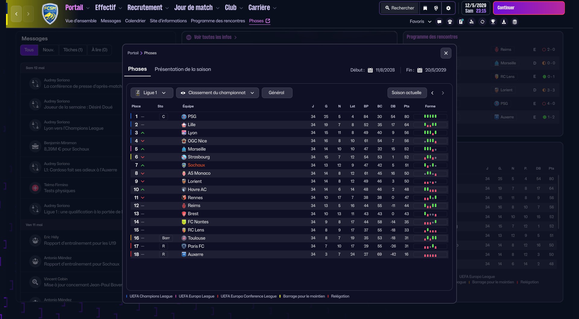 Finalement de CDf face au PSG, ouúje fais 1-1, et je perds au tab. Saison tranquille.