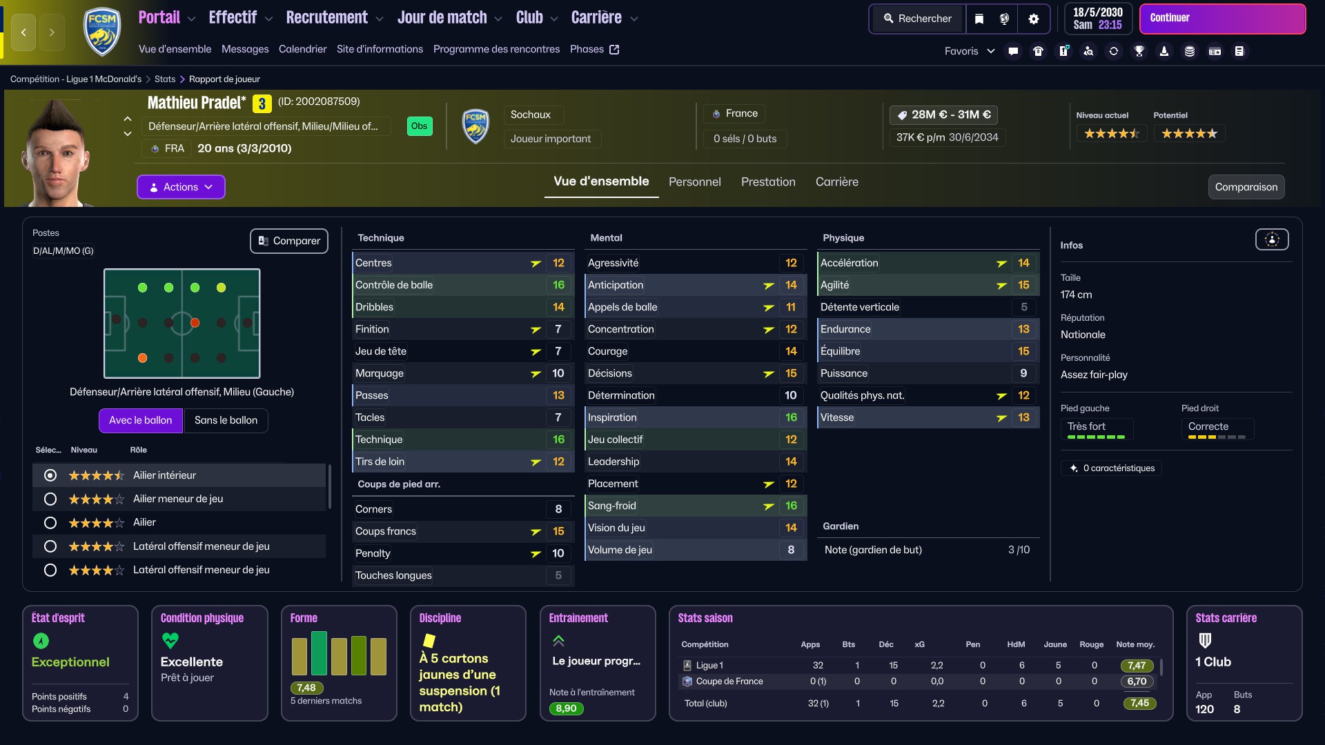 Pradel du CdF de Sochaux meilleur passeur de L1 ! Et sélectionné pour la coupe du monde 2030 !
