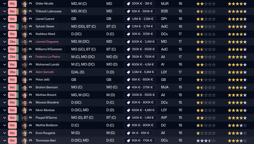 En sachant que je suis déja très bien fourni par mon centre de formation. Aucune recrue de l’extérieur dans cette liste :