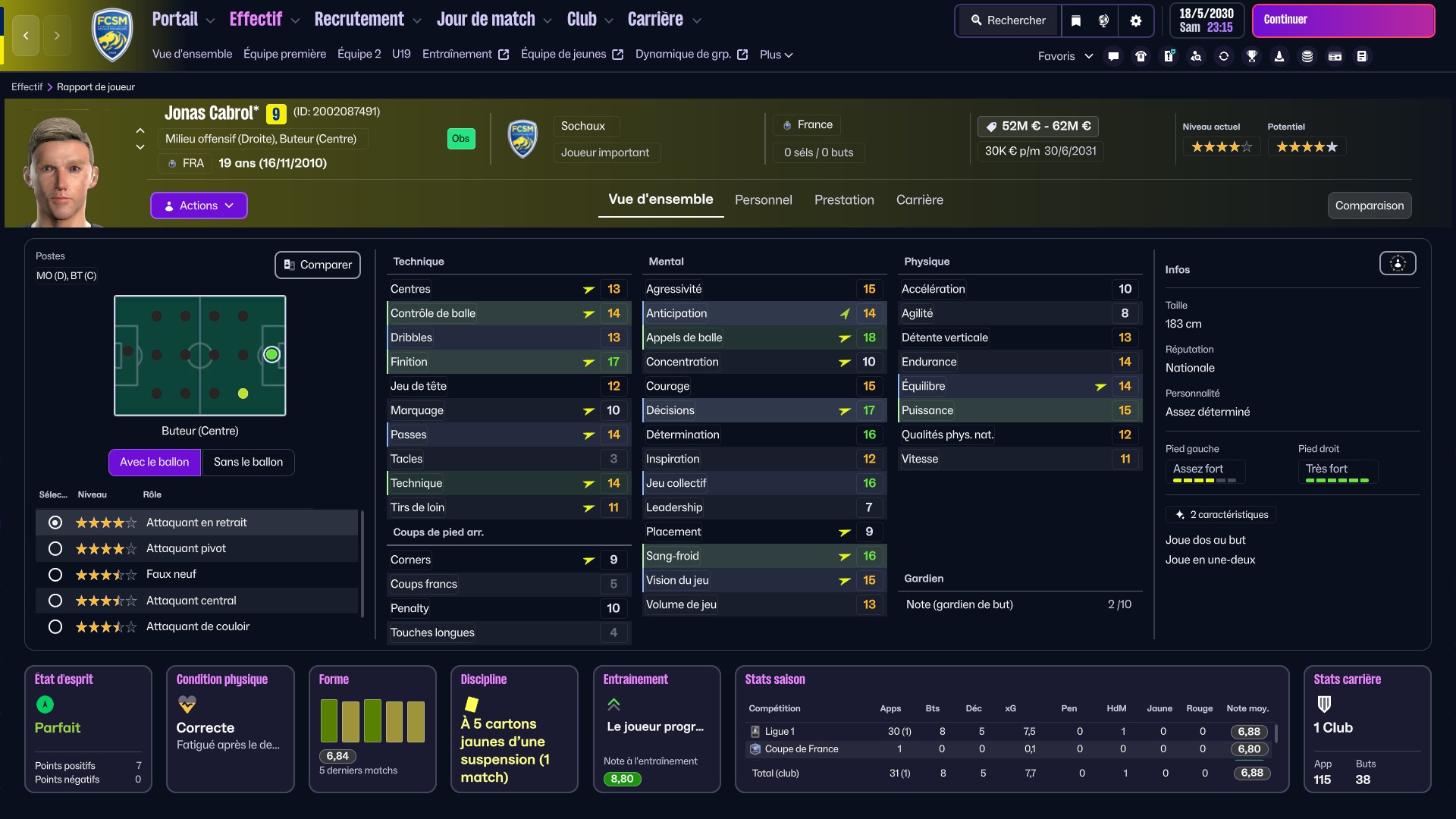 Coté départ, premier “gros” transfert. Bouzamoucha a quitté le club pour 1,5 million (800k cash et 700K en 2 fois). Offre que je ne peux pas refuser a ce stade là (3 fois sa valeur).