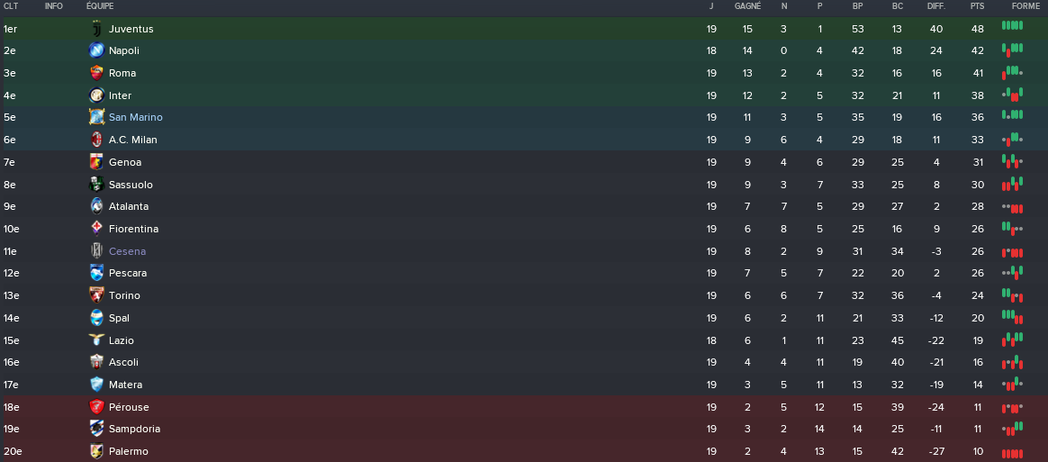 Que dire ? Je suis très surpris des résultats et du niveau affiché durant cette demi-saison. Hormis la Juve, où je n’ai pas existé, les autres matchs ont montré une équipe san marinaise joueuse et audacieuse.