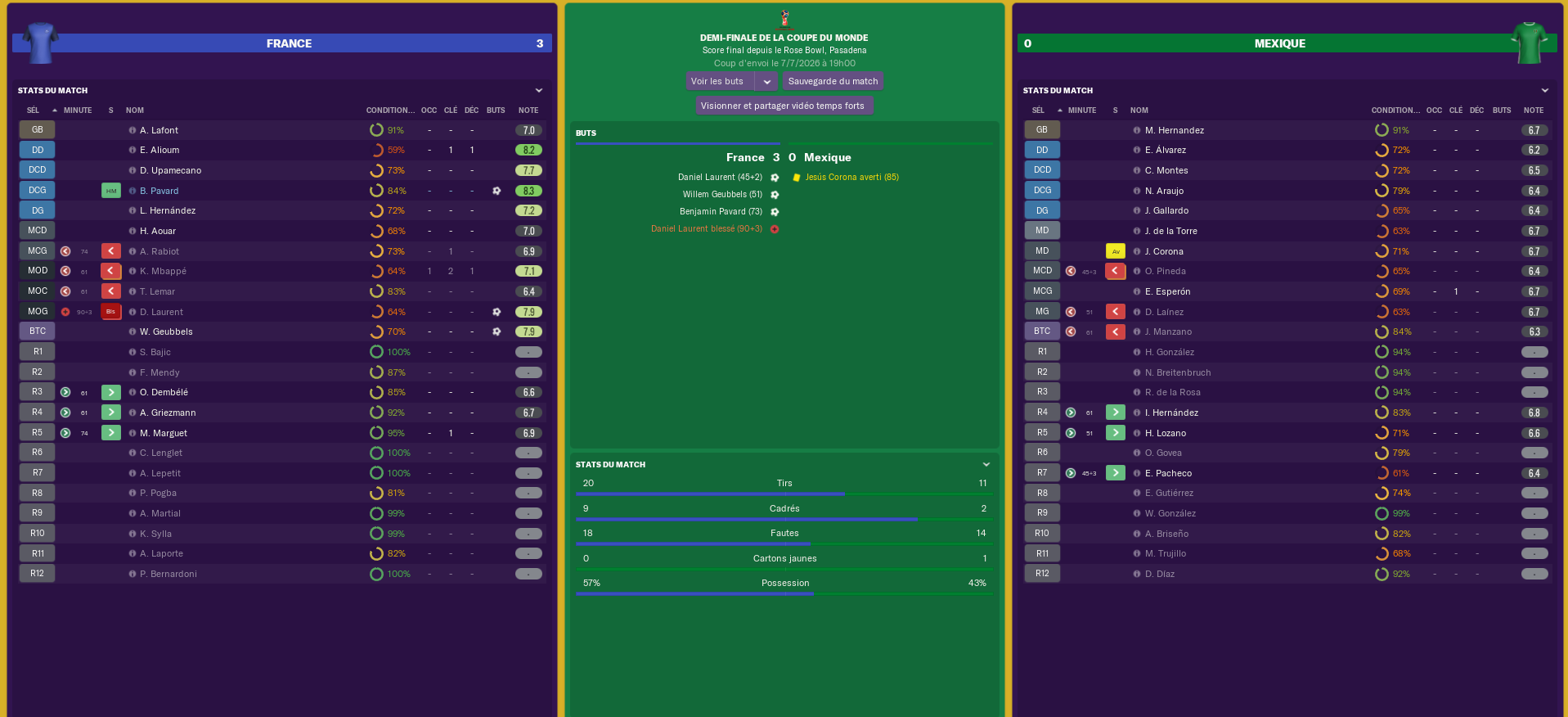 Au milieu de terrain, ca sent le ballon … Pogba, Rabiot, Aouar et Lemar ! Mais ca manque totalement de récupérateur.