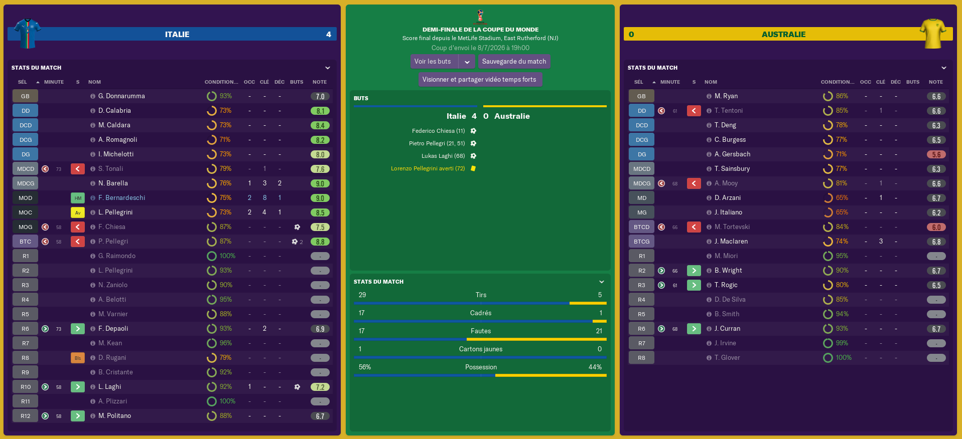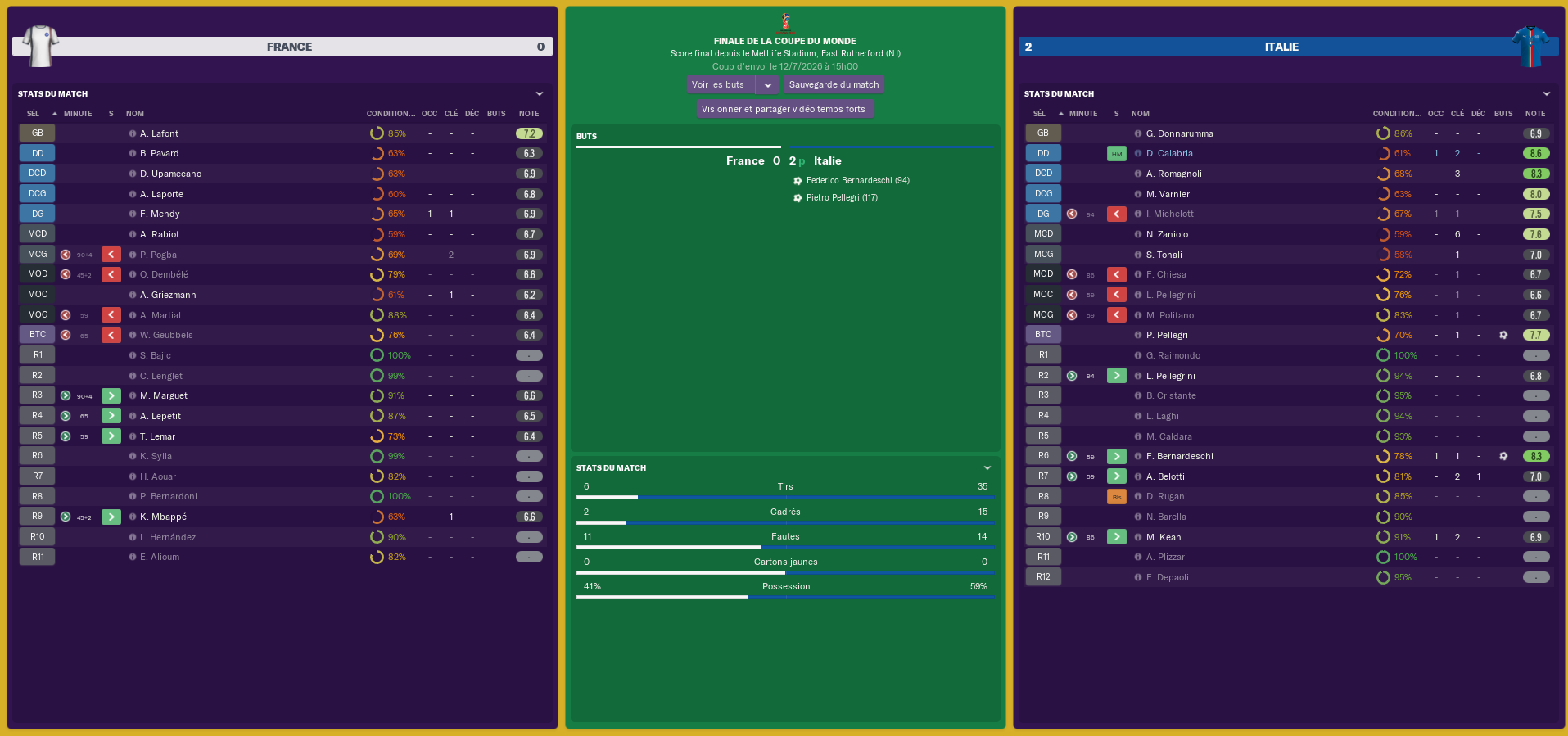 Grosse domination de l’Italie qui a passé la majorité du temps dans le camp français.