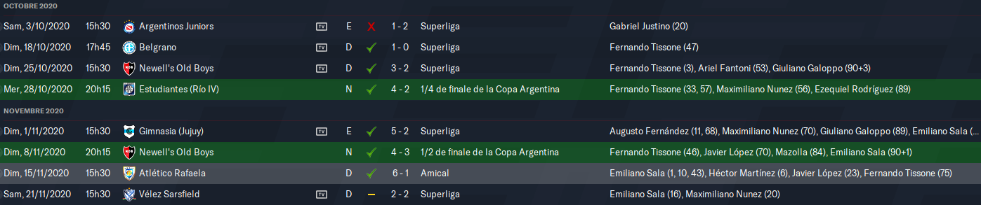 | Emiliano Sala (89) | Matias de Los Santos (Sp 90+5) | |||