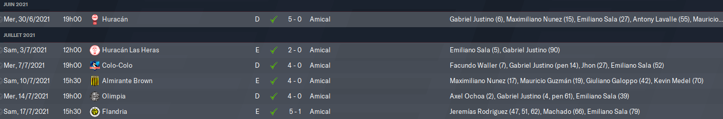 Une prĂ©paration qui sera Ă©courtĂ© avec lâarrivĂ©e rapide de notre 1/8 de finale de Copa Libertadores contre Sao Paulo, il faudra rapidement ĂȘtre prĂȘt donc nous affronterons des Ă©quipes qui auront un niveau continentale avec notamment Huracan, Colo Colo et Olimpia !