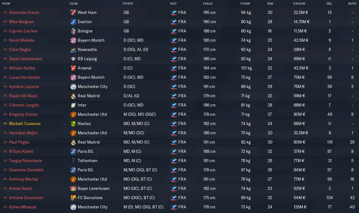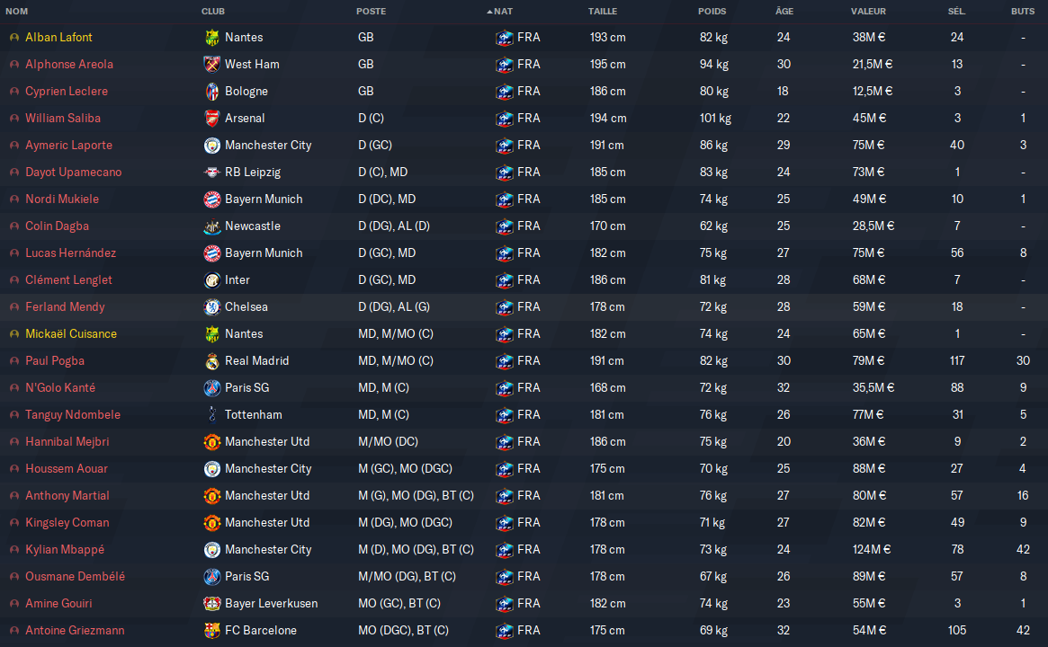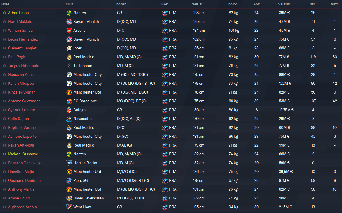 Alban Lafont (blessé), Léo Dubois (Blessé), Ferland Mendy (choix), Boubacar Kamara (choix), Raphael Varane (blessé)