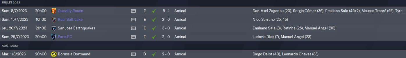 Une prĂ©paration courte, trop courte Ă mon goĂ»t ⊠je me suis loupĂ© et jâai tout laissĂ© Ă mon adjoint alors quâen gĂ©nĂ©ral je complĂšte ma prĂ©pa Ă mon goĂ»t. Enfin bref, on joue contre 2 de nos clubs affiliĂ©s puis une petite tournĂ©e aux States avant de dĂ©fier Dortmund pour voir si nous sommes prĂȘt