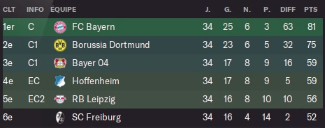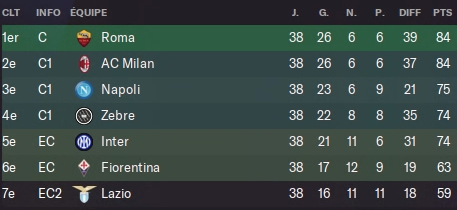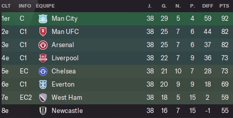 La saison 6 est maintenant finie, c’est celle de la confirmation que nous sommes le 2ème meilleur club de L1 et que pour la seconde année consécutive, on met les autres loin derrière. Elle me montre aussi que je dois peut être moins faire tourner en Coupe pour essayer d’avoir cet objectif à mon tableau de chasse. C’est aussi la saison on a enfin décollé sur la scène européenne. J’espère qu’on sera dans un meilleur chapeau pour pouvoir avoir quelques matchs plus faciles en LdC.