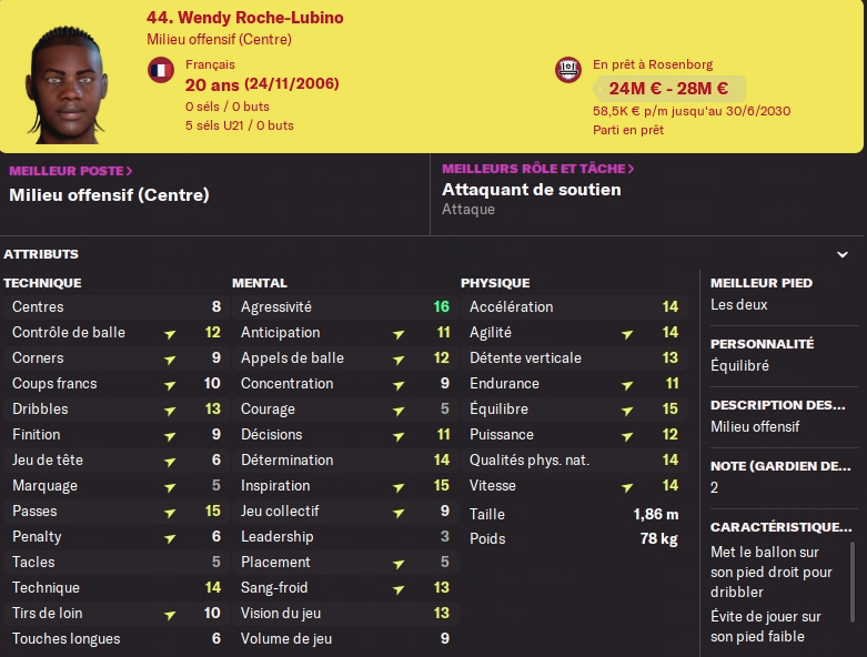 Derrière, Roche-Lubino avait du temps de jeu mais s’st blessé. A son retour de blessure il a voulu tout de suite être prêté, ok. Bon, son prêt dure jusqu’à décembre, ce qui ne m’arrange pas. Il en est à 9 matchs pour 3 buts et 7.16 de moyenne en Norvège où il est titulaire. A son retour, il sera toujours remplaçant de Félix qui est indéboulonnable. A voir s’il accepte la situation. Félix peut aussi reculer d’un cran pour laisser la place et partir de plus bas sans perdre de son rendement ! (voir sa fiche)