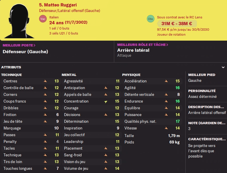 Ruggeri a fait une très belle première saison au club lui qui avait la lourde tâche de faire oublier Guttierez, titulaire depuis 3 ans en prêt. Et il l’a fait avec brio, réalisant le plus de passes décisives parmis mes arrières latéraux. Une valeur sûre qui peut encore progresser. (voir sa fiche)
