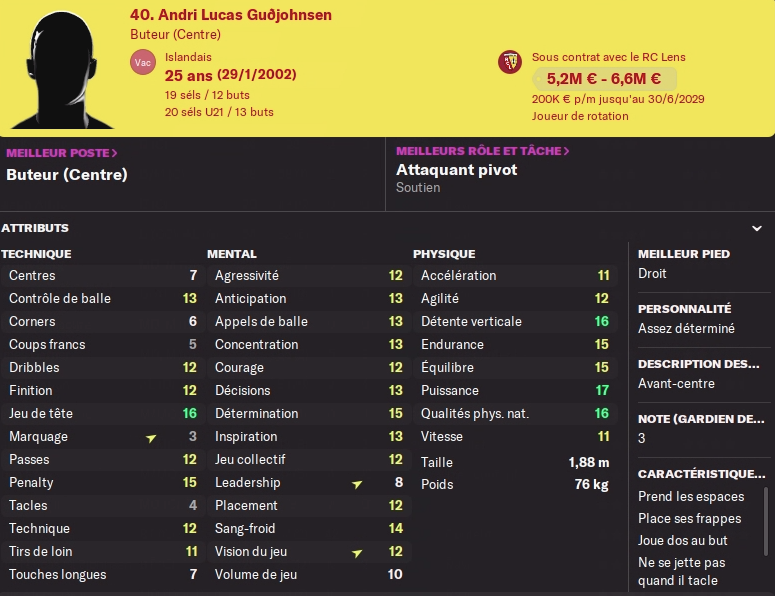 Oui il est assez monstrueux. J’en avais entendu parler à force de lire des trucs sur FM22, mais je confirme qu’il est bien énorme. Il a quand même mis 3 saisons avant d’être au top, mais là il est lancé !