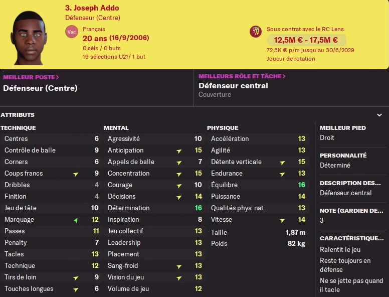 Addo grandit petit à petit, à 20 ans il assume d’être souvent titulaire (voir sa fiche)