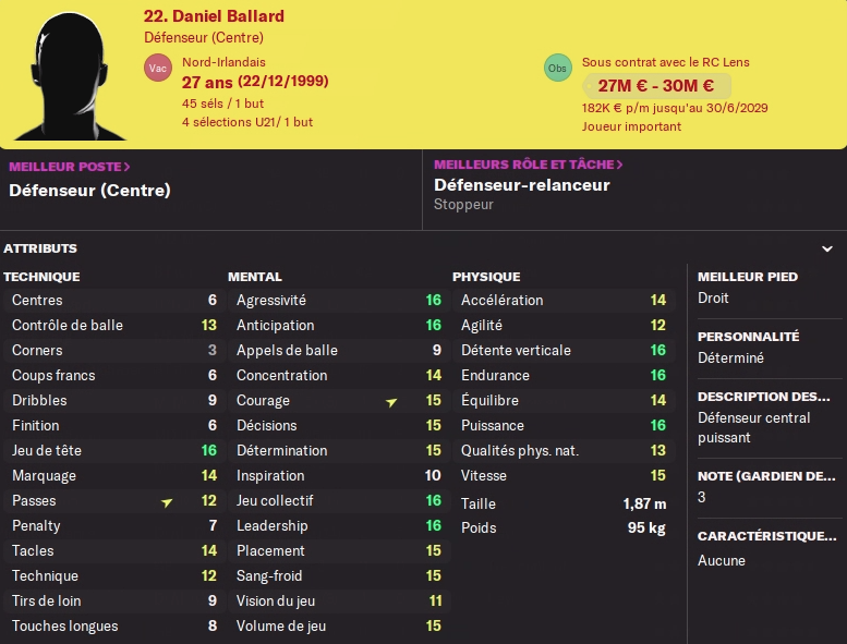 Mon trio défensif sera constitué de Danso, inamovible, Ballard le plus fort théoriquement, et Trujillo ma nouvelle recrue au potentiel énorme.