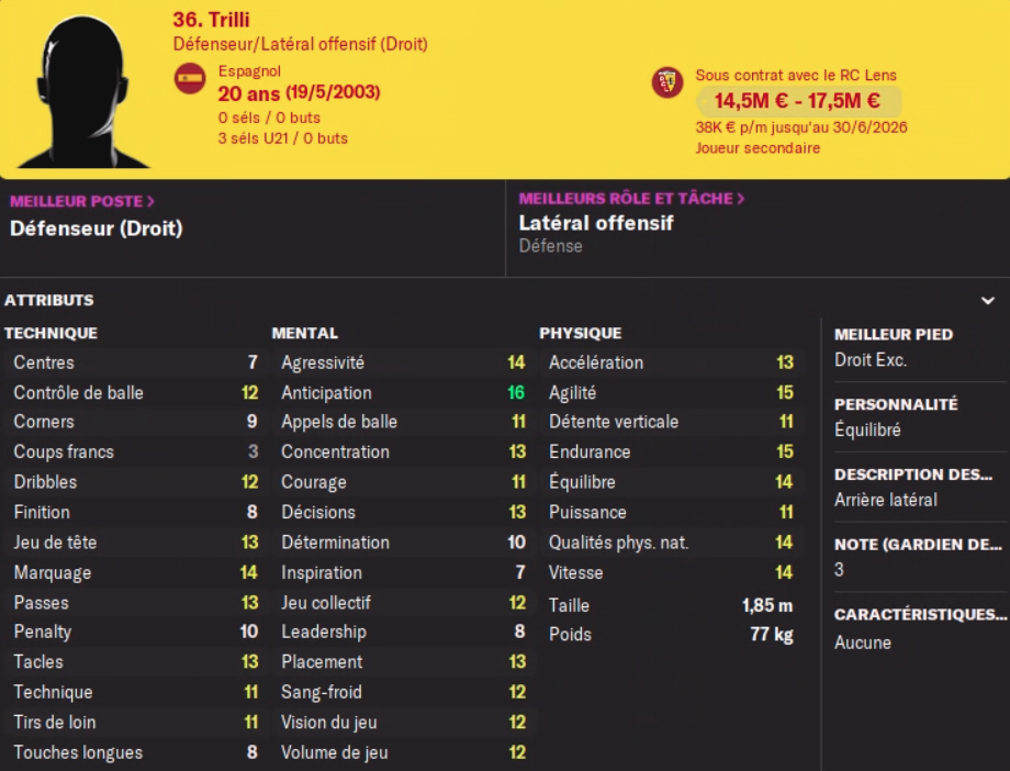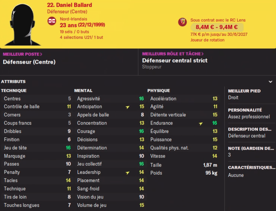 Je me demande toujours ce qui freine moins leur progression. J’ai souvent idée que être titulaire en L2 par exemple est plus profitable que de jouer des bouts de matchs en L1 non ? J’ai déjà une offre pour être titulaire en L2 pour mon DC. Après dans une défense à trois je peux facilement lui donner des bouts de matchs pour finir les matchs qu’on domine facilement.