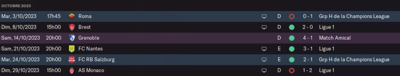 Et bien je pense qu’on peut dire adieu à nos rêves de podium. Des points bêtement perdus contre deux équipes accessibles : Lorient et Bordeaux. Et surtout des gros soucis offensifs qu’on a du mal à régler. Je n’arrive toujours pas à trouver la jauge tactiquement entre solidité défensive et performance offensive et ça m’énerve.