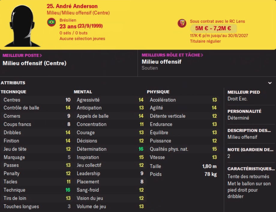 Un peu panic buy sur la fin du mercato. J’ai senti qu’un MOC prometteur serait utile à l’effectif, mais très dur de trouver. André est au niveau de Kakuta et Da Costa mais avec un joli potentiel. Il a déjà connu 2 matchs de Coupe d’Europe, ce qui est un peu juste. Clairement pas un crack, mais peut être un joli potentiel.
