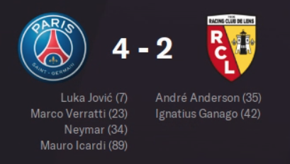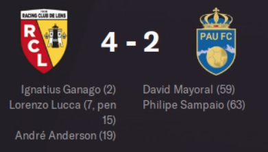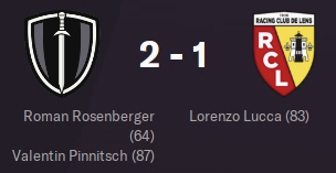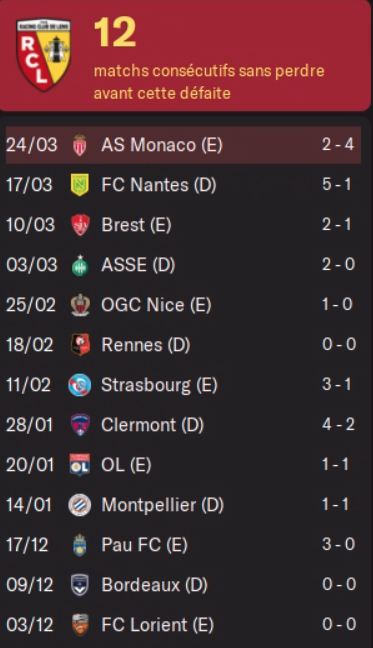 GANAGO LE SAUVEUR !!! Notre attaquant vient nous offrir une victoire au bout du temps additionnel alors que j’avais déjà perdu ma voix à force de hurler. Ma souris a failli voler ! Un match que l’on domine tellement largement mais où on court derrière le score quasi les 2/3 du matchs. Je crois que tout va mieux quand on repasse devant en 2 minutes. Et puis on prend un nouveau but en fin de match. Le scénario est décidément souvent le même : notre adversaire marque sur la majorité de ses occasions (0.92xg pour 2 buts !) et nous on galère à marquer… Heureusement ça fini bien ! Dans le même temps, Lille fait un nul décevant sur son terrain contre Nantes, nous voilà donc un point devant eux : nous avons notre destin dans les pieds !