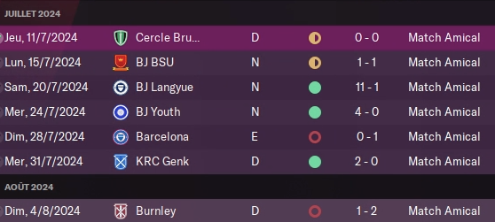 C’est parti pour la saison 2024/2025 ! Nous serons européens pour la 3ème année consécutifs (faisant gonfler notre indice UEFA, toujours ça de pris), et visons toujours plus haut. Mes joueurs majeurs me réclament une qualification en Ligue des Champions ! Il va donc falloir viser haut pour garder nos vedettes sous peine de devoir reconstruire un nouveau projet !