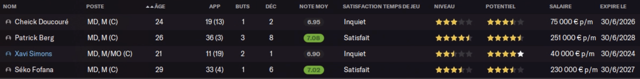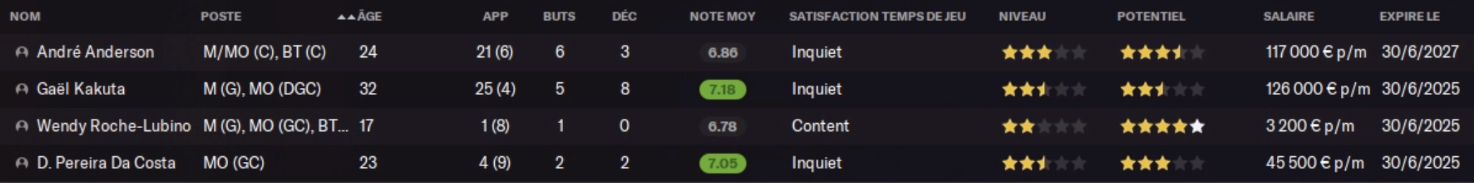 Les objectifs de mes dirigeants c’est donc de se qualifier pour la Conference League cette année avant de viser l’Europa League l’an prochain… Et la Ligue des Champions l’année suivante. Espérons qu’ils y mettent l’argent ! Ils veulent aussi que nous remportions une coupe nationale l’an prochain, pendant qu’ils essayeront de vendre le club… Bon pourquoi pas, mais un environnement non stable n’est pas l’idéal. Reste que j’accepte de signer pour 4 ans, avec une augmentation de 8000€ par mois !