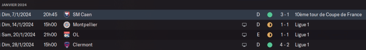Pour notre entrée en coupe de France, c’est le Stade Malherbe de Caen qui se dresse face à nous. Une équipe à notre portée, mais je compte faire jouer mes remplaçants avant tout, donc c’est vite dangereux contre une équipe pas si éloignée.